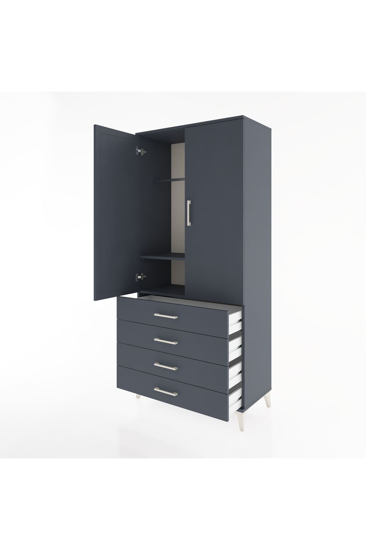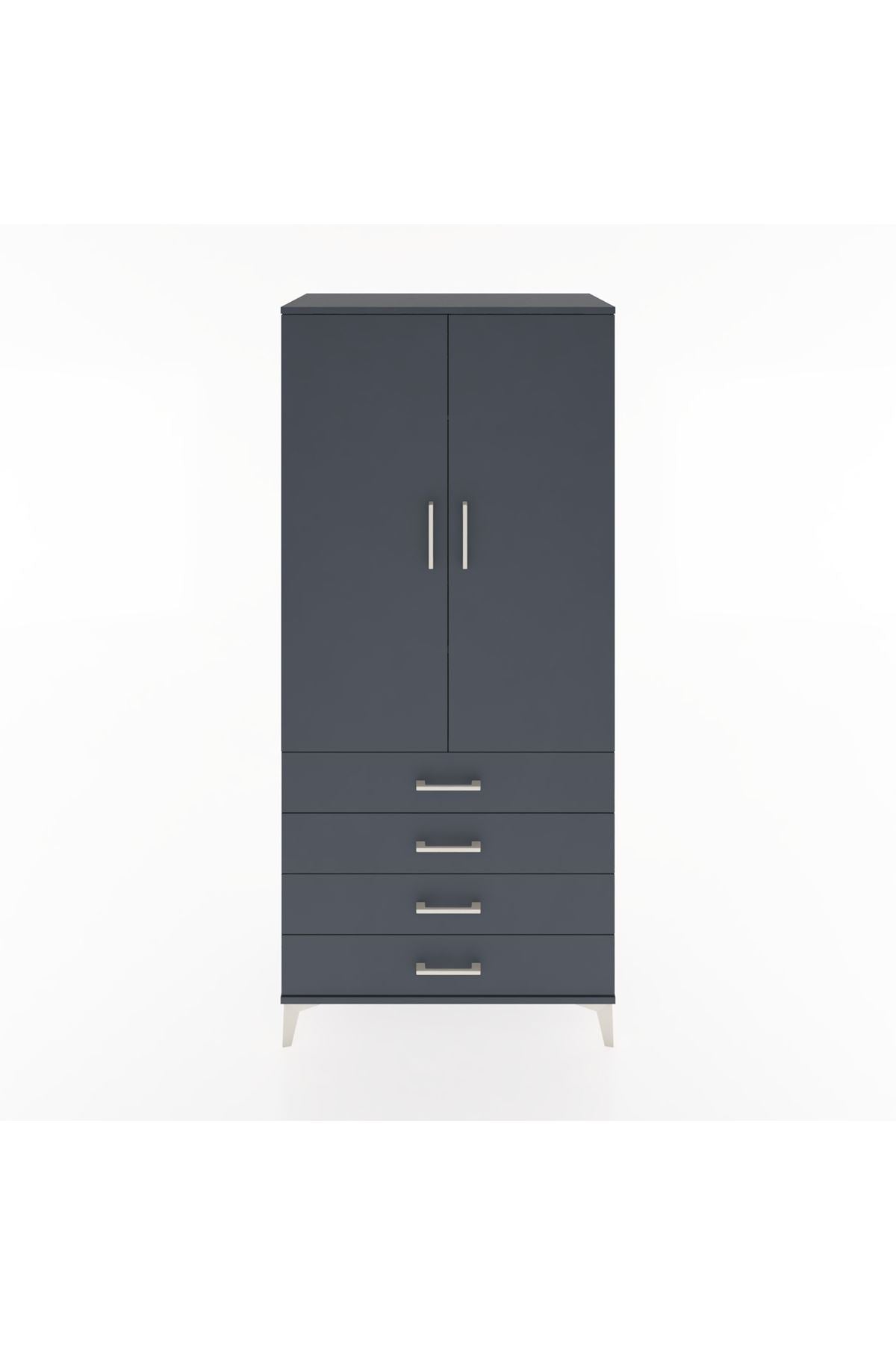 Hyperion Dolap 2 Raflı 4 Çekmeceli Tek Askılı 88x44x195 Antrasit-Antrasit