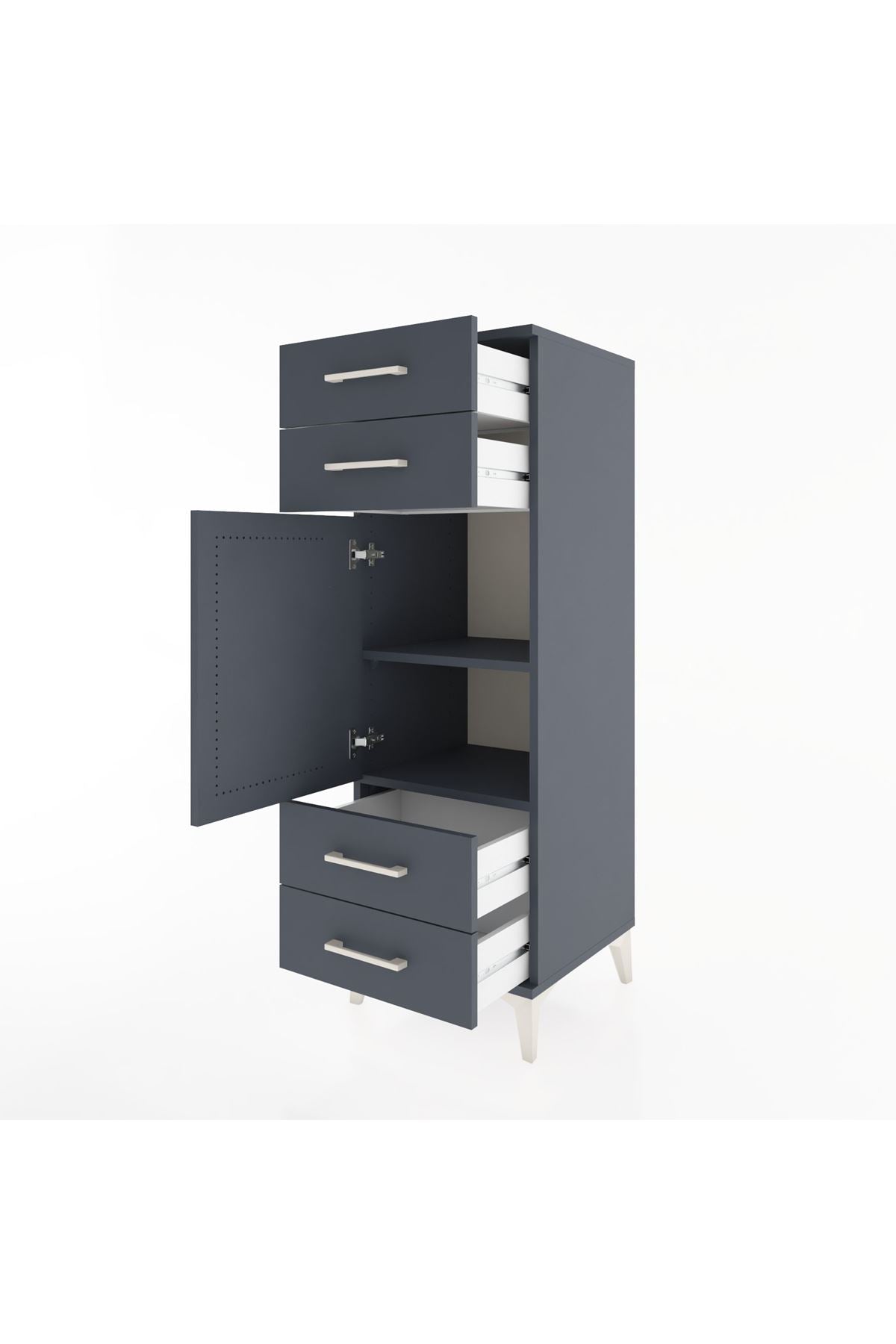 Hyperion Dolap 2 Raflı 4 Çekmeceli Tek Kapaklı 44x44x134 Antrasit-Antrasit