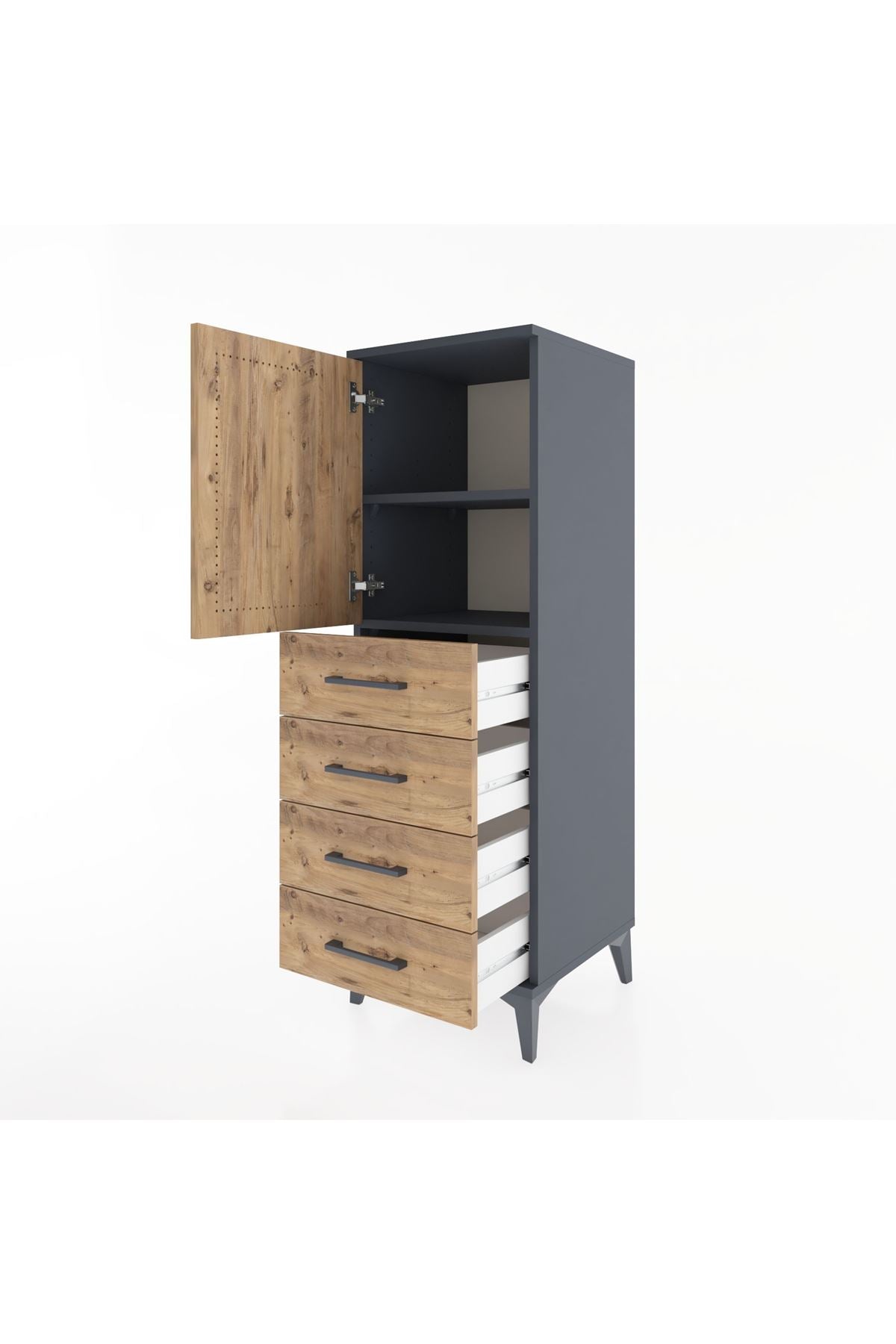 Hyperion Dolap 2 Raflı 4 Çekmeceli Tek Kapaklı 44x44x134 Antrasit-Çam