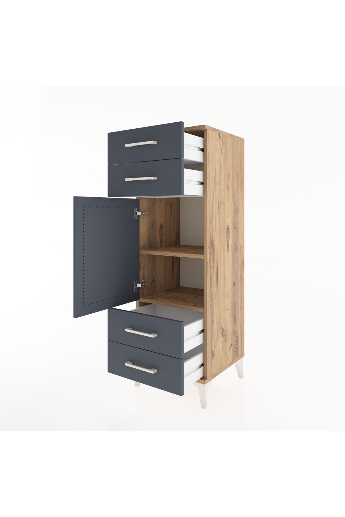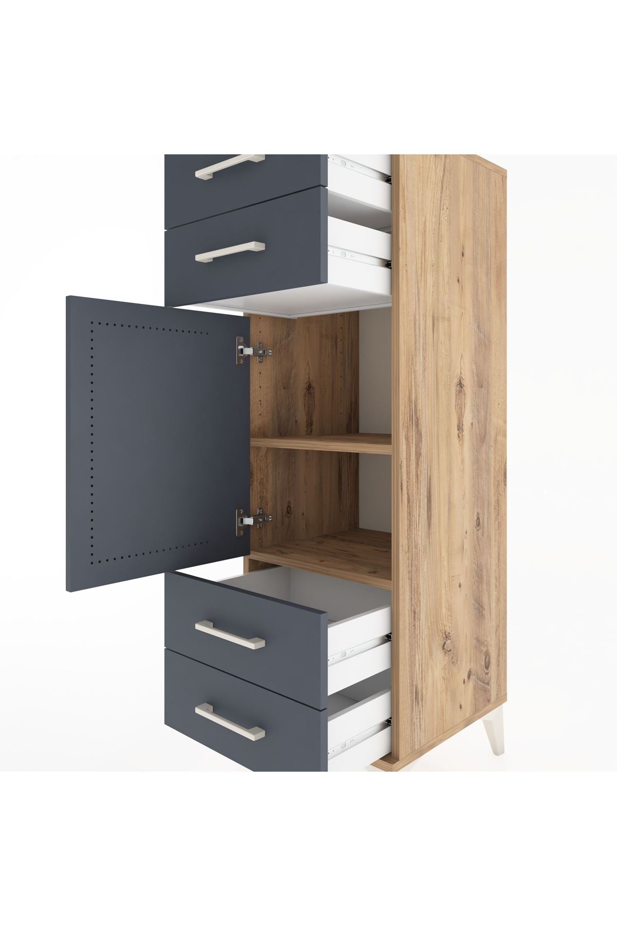 Hyperion Dolap 2 Raflı 4 Çekmeceli Tek Kapaklı 44x44x134 Çam-Antrasit