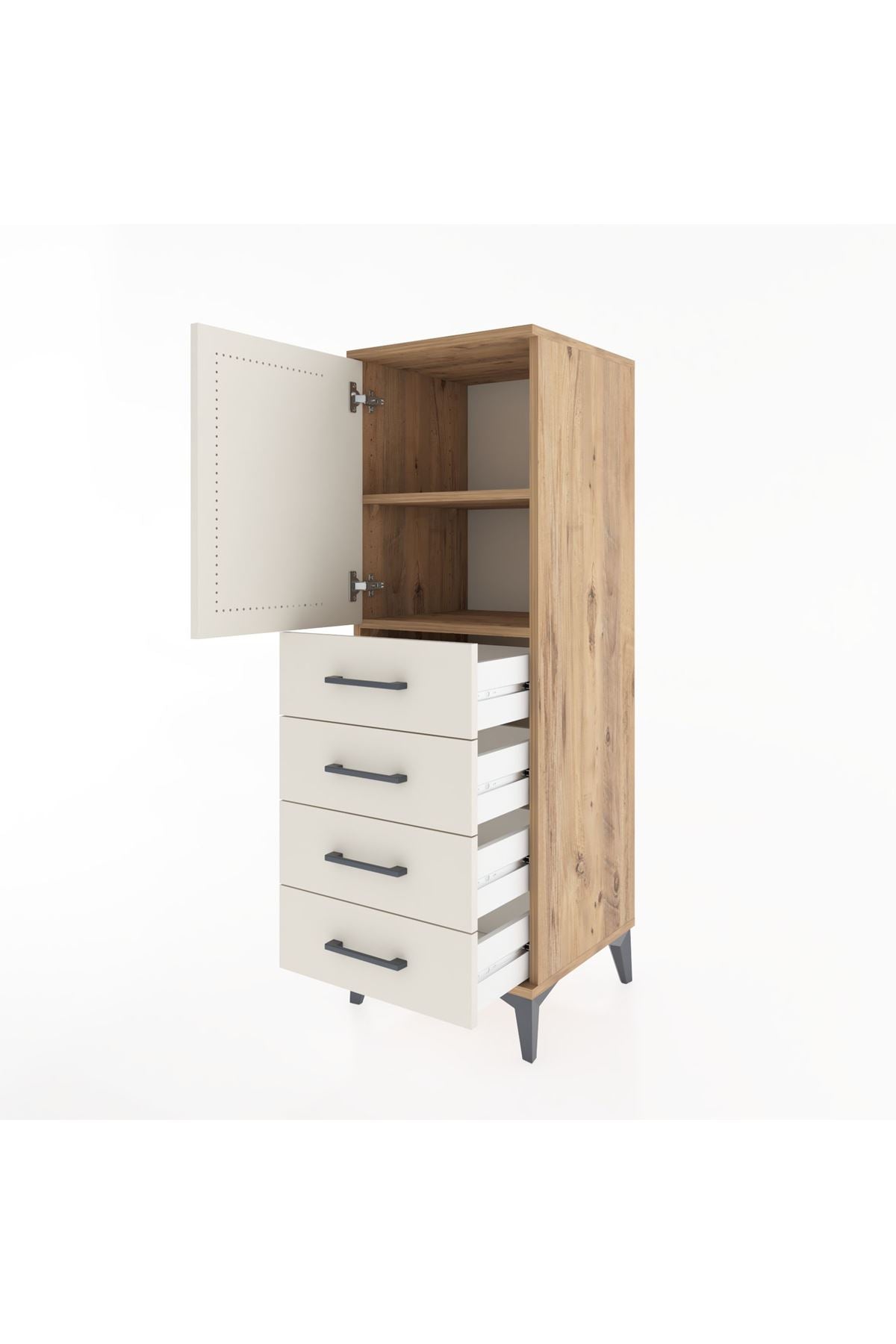 Hyperion Dolap 2 Raflı 4 Çekmeceli Tek Kapaklı 44x44x134 Çam-Aytaşı