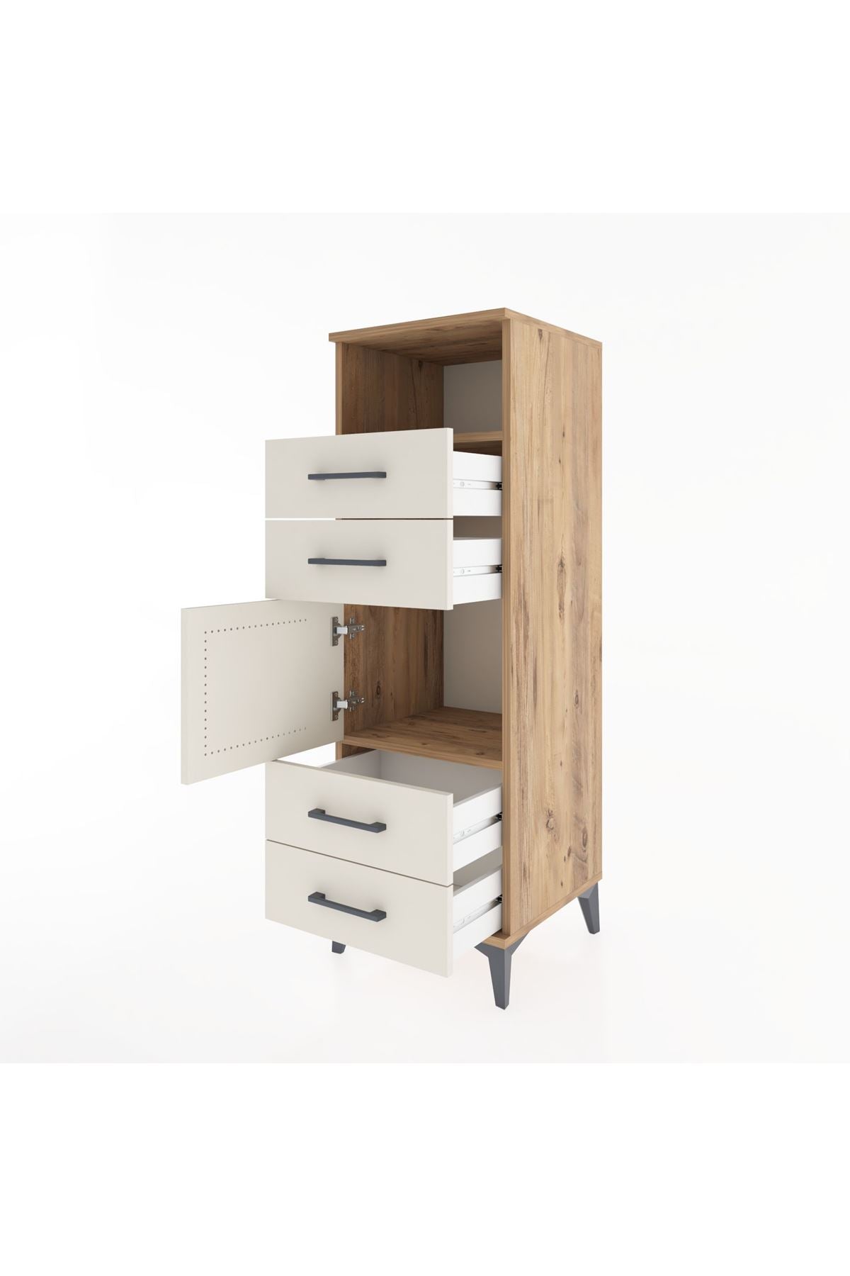 Hyperion Dolap 2 Raflı 4 Çekmeceli Tek Kapaklı 44x44x134 Çam-Aytaşı