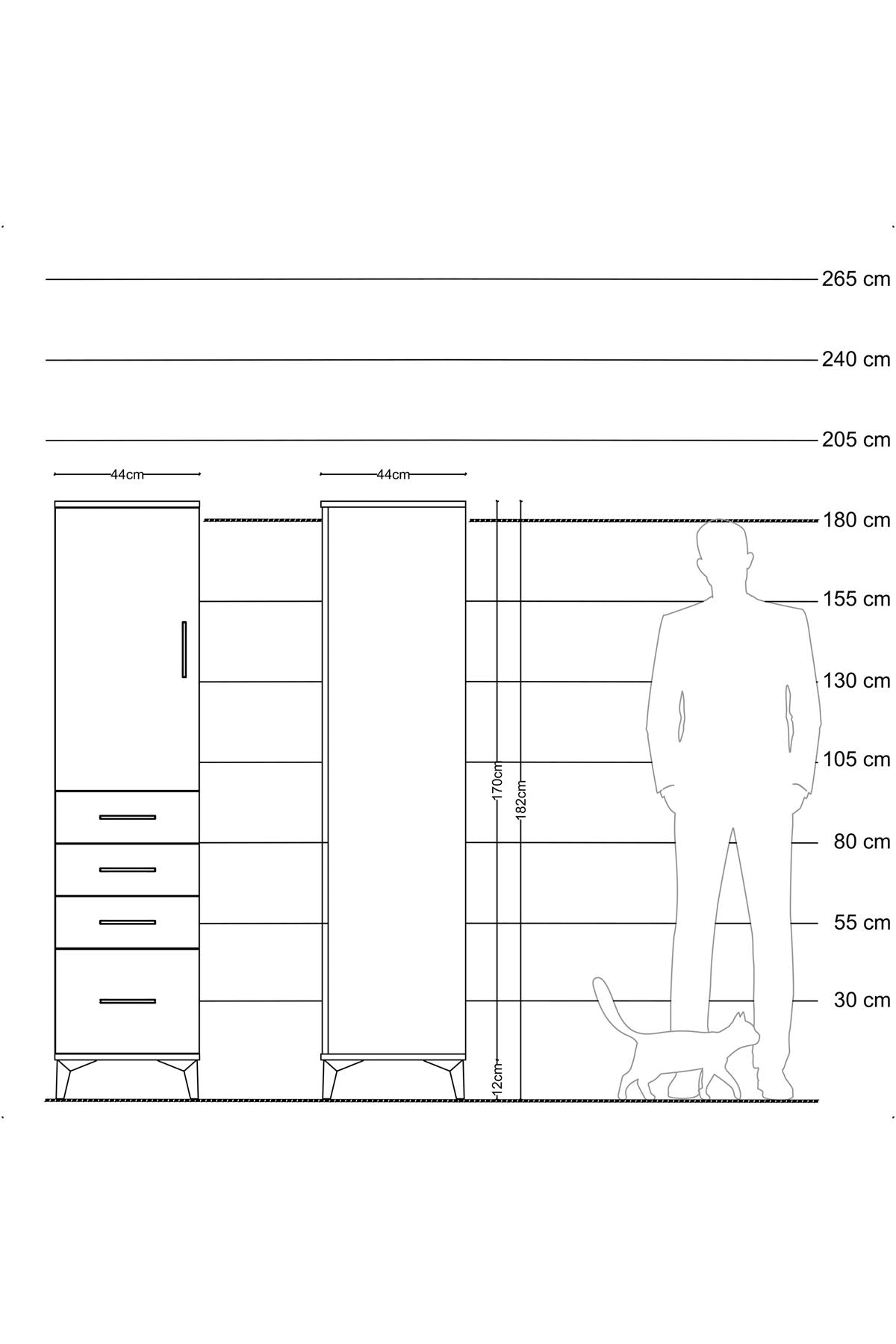 Hyperion Dolap 2 Raflı 4 Çekmeceli Tek Kapaklı 44x44x182 Çam-Çam
