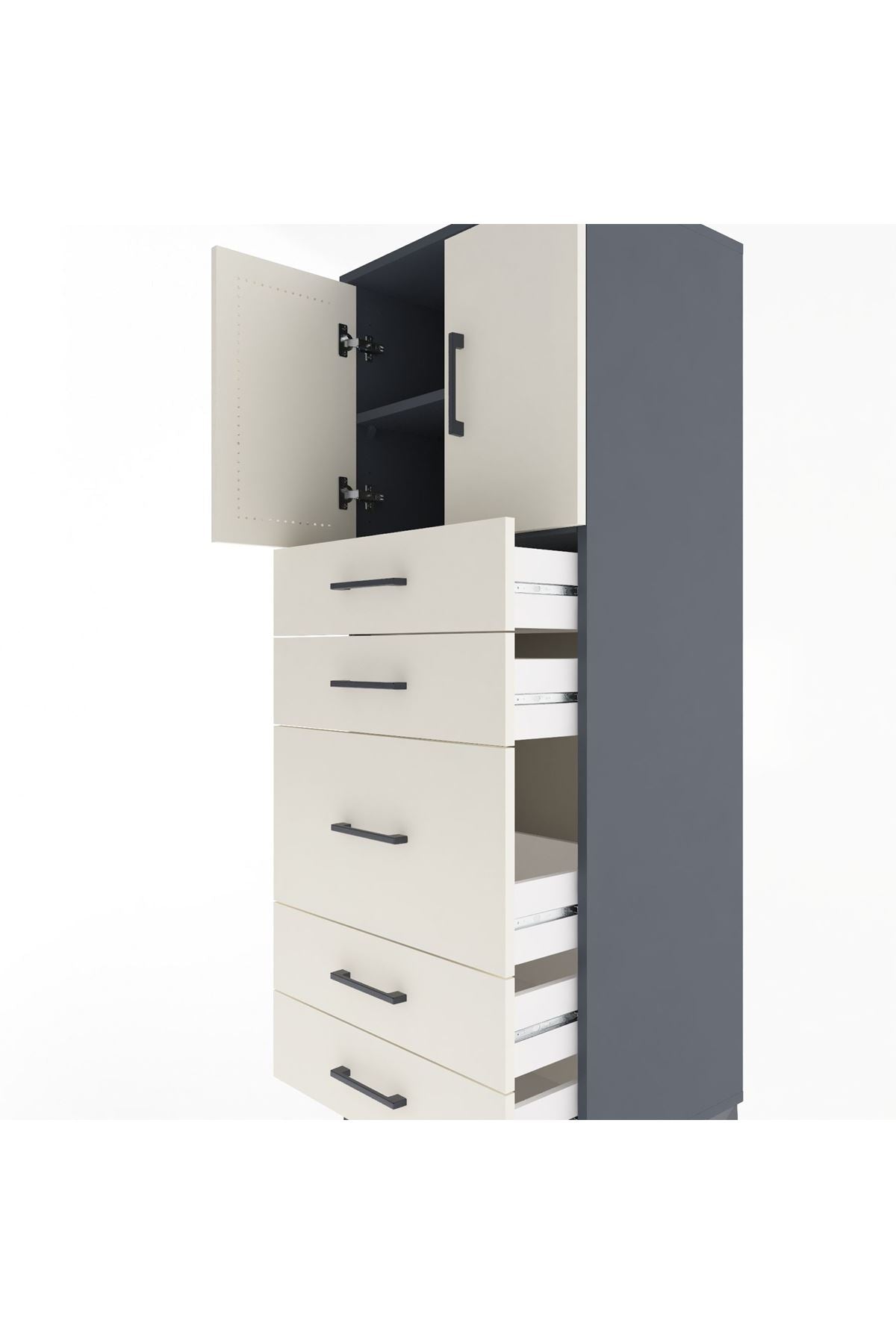 Hyperion Dolap 2 Raflı 5 Çekmeceli 2 Kapaklı 60x44x163 Antrasit-Aytaşı