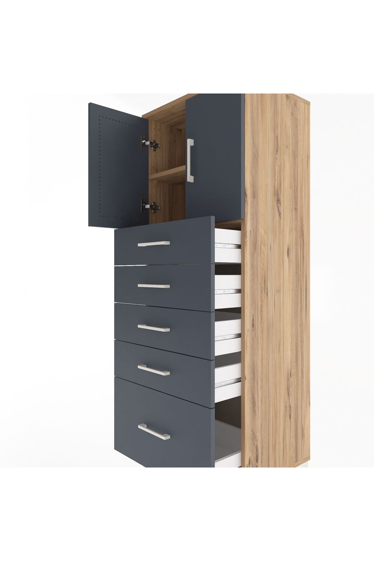 Hyperion Dolap 2 Raflı 5 Çekmeceli 2 Kapaklı 60x44x163 Çam-Antrasit