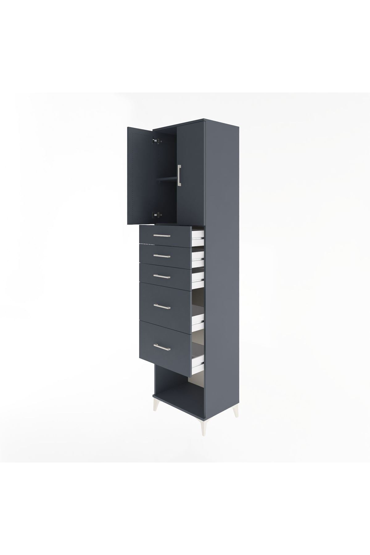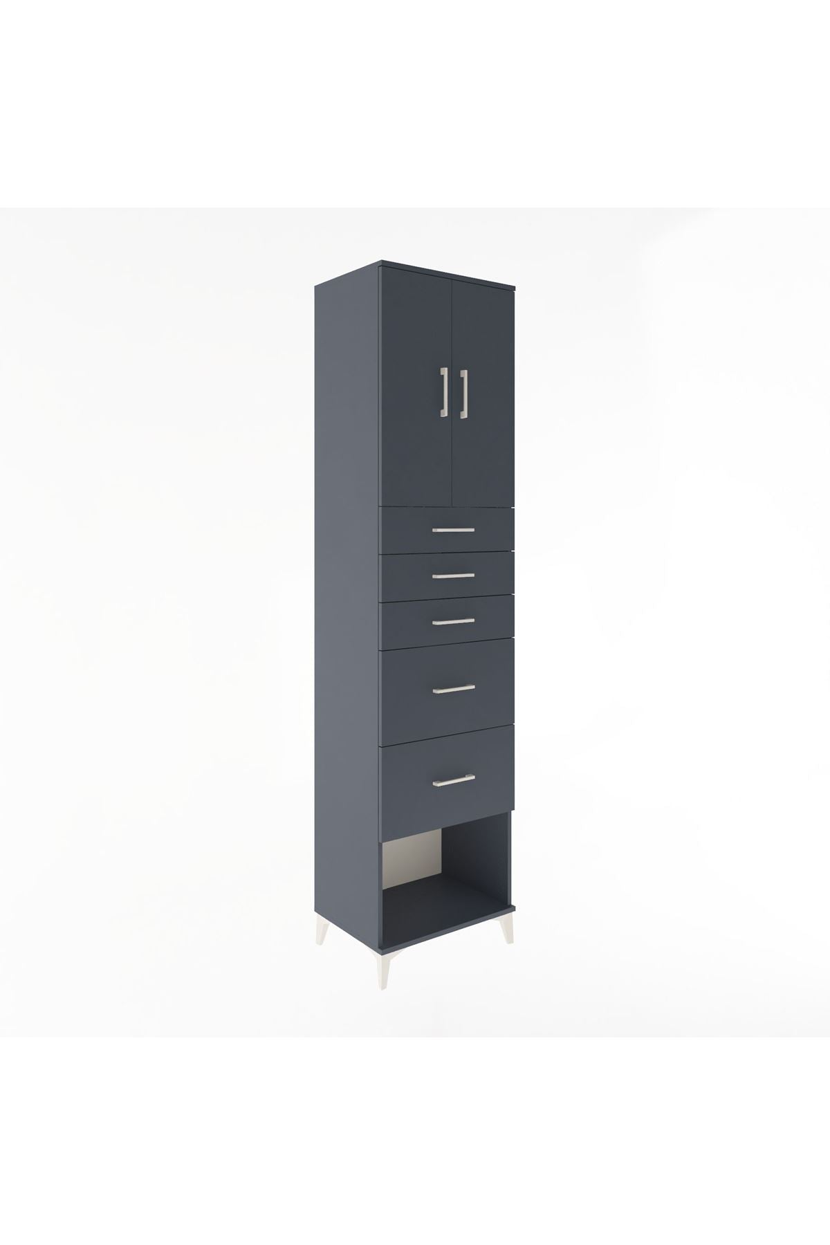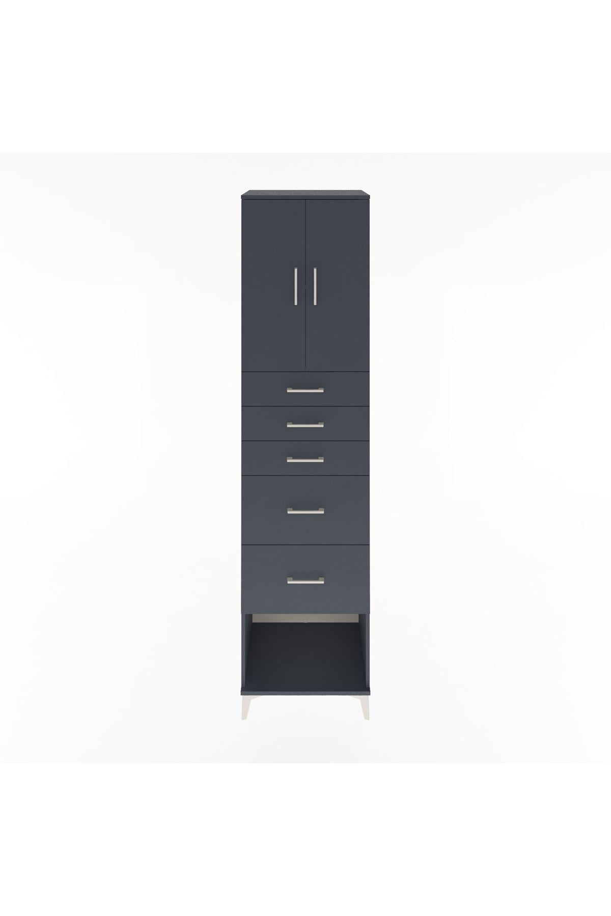 Hyperion Dolap 2 Raflı 5 Çekmeceli 2 Kapaklı 60x44x243 Antrasit-Antrasit