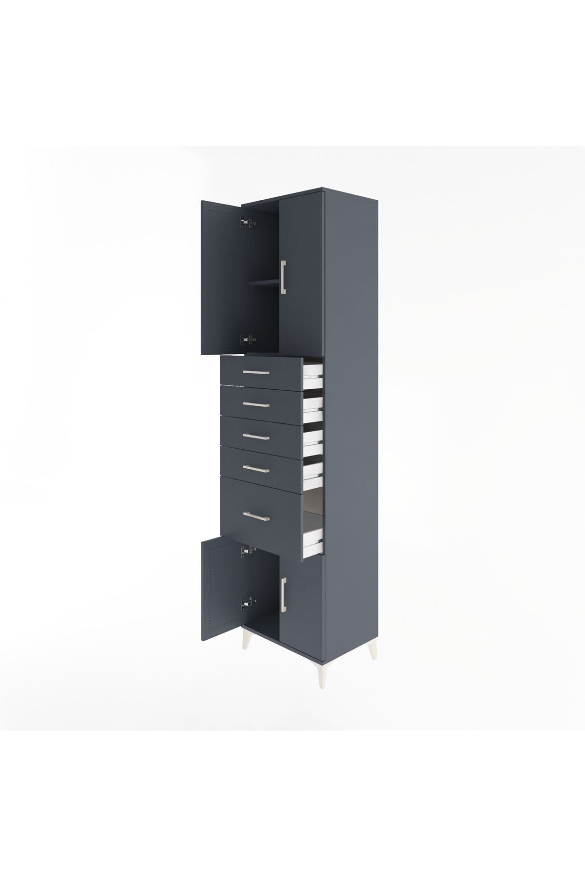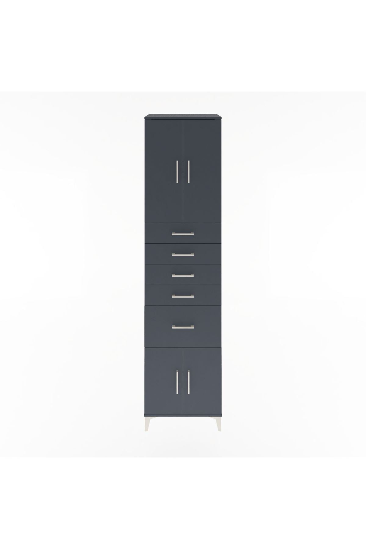 Hyperion Dolap 2 Raflı 5 Çekmeceli 4 Kapaklı 60x44x243 Antrasit-Antrasit
