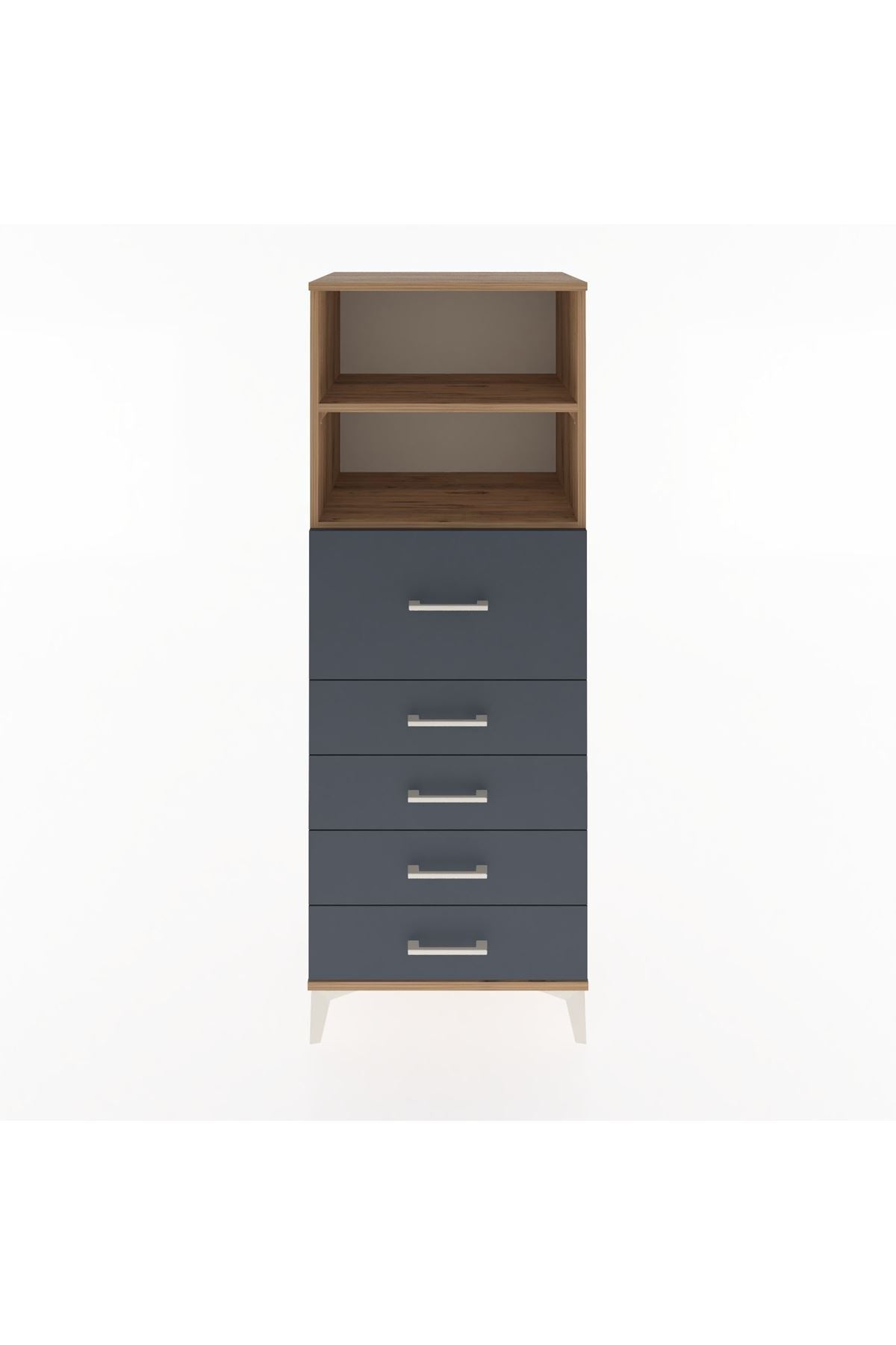 Hyperion Dolap 2 Raflı 5 Çekmeceli 60x44x163 Çam-Antrasit