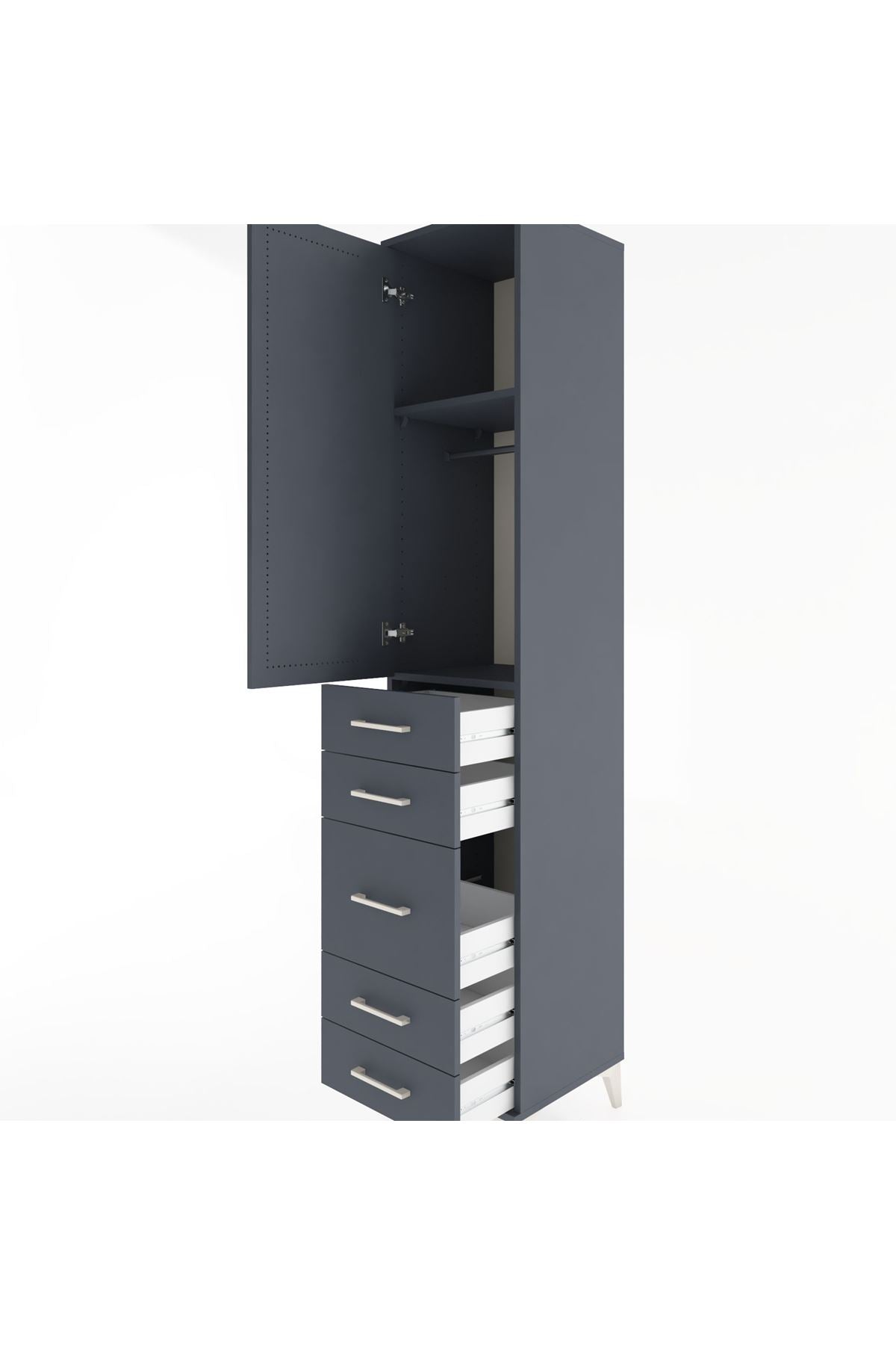 Hyperion Dolap 2 Raflı 5 Çekmeceli Tek Askılı 44x44x221 Antrasit-Antrasit