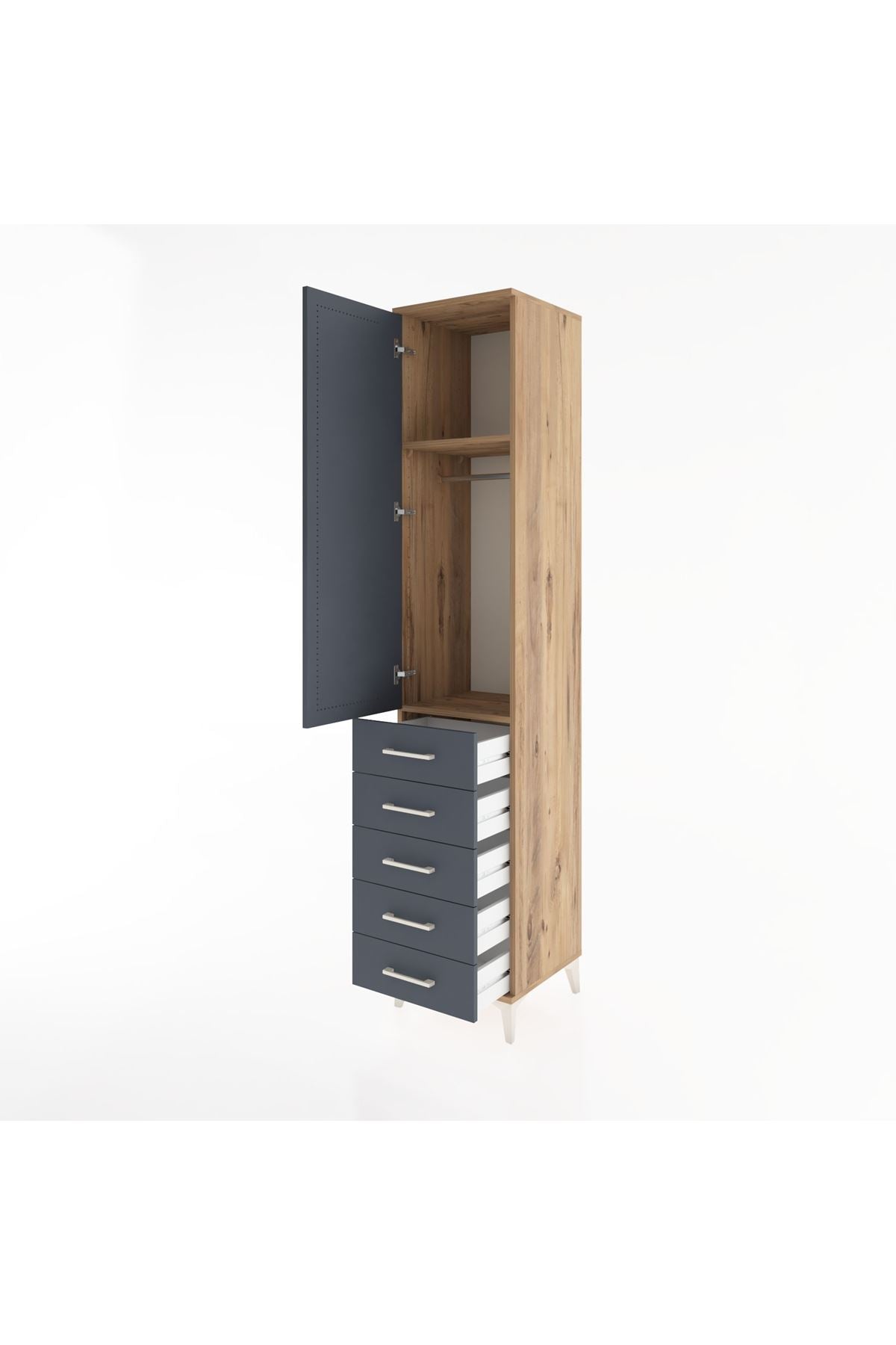 Hyperion Dolap 2 Raflı 5 Çekmeceli Tek Askılı 44x44x221 Çam-Antrasit