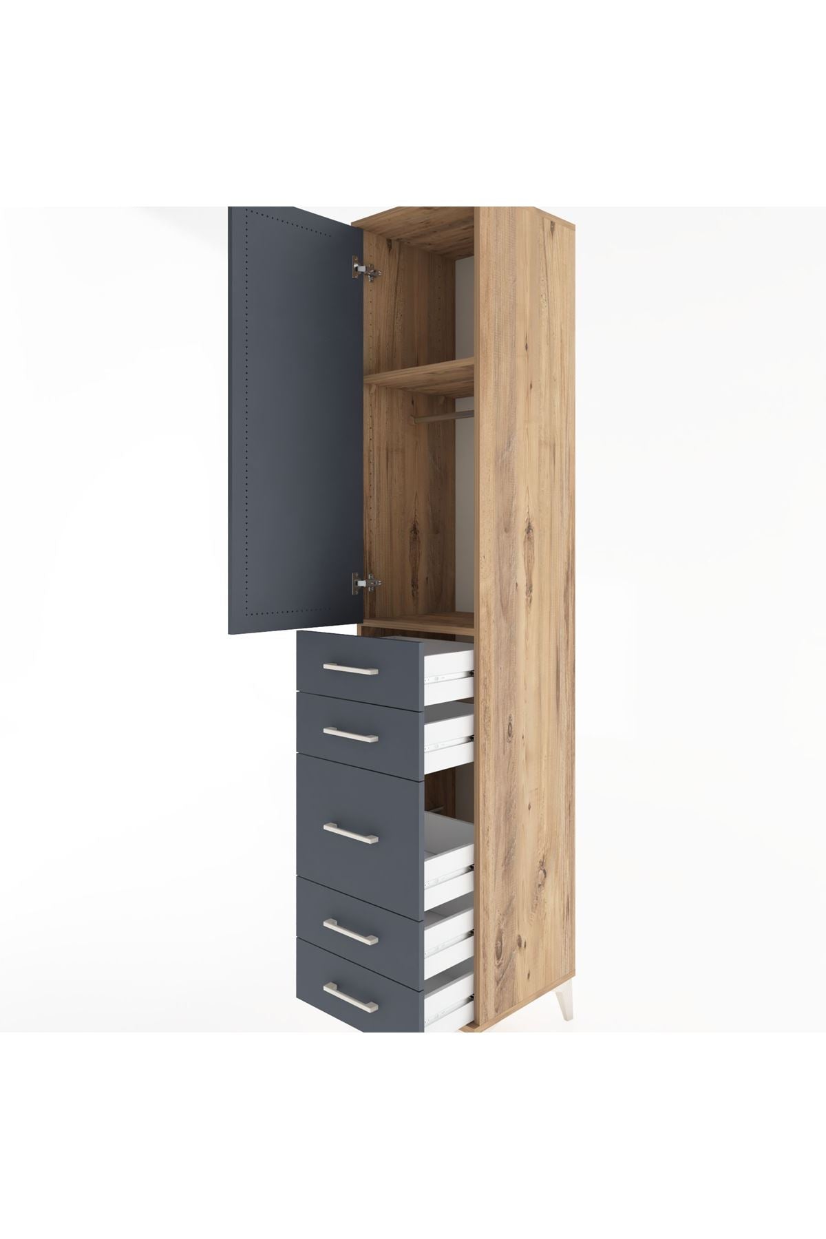 Hyperion Dolap 2 Raflı 5 Çekmeceli Tek Askılı 44x44x221 Çam-Antrasit