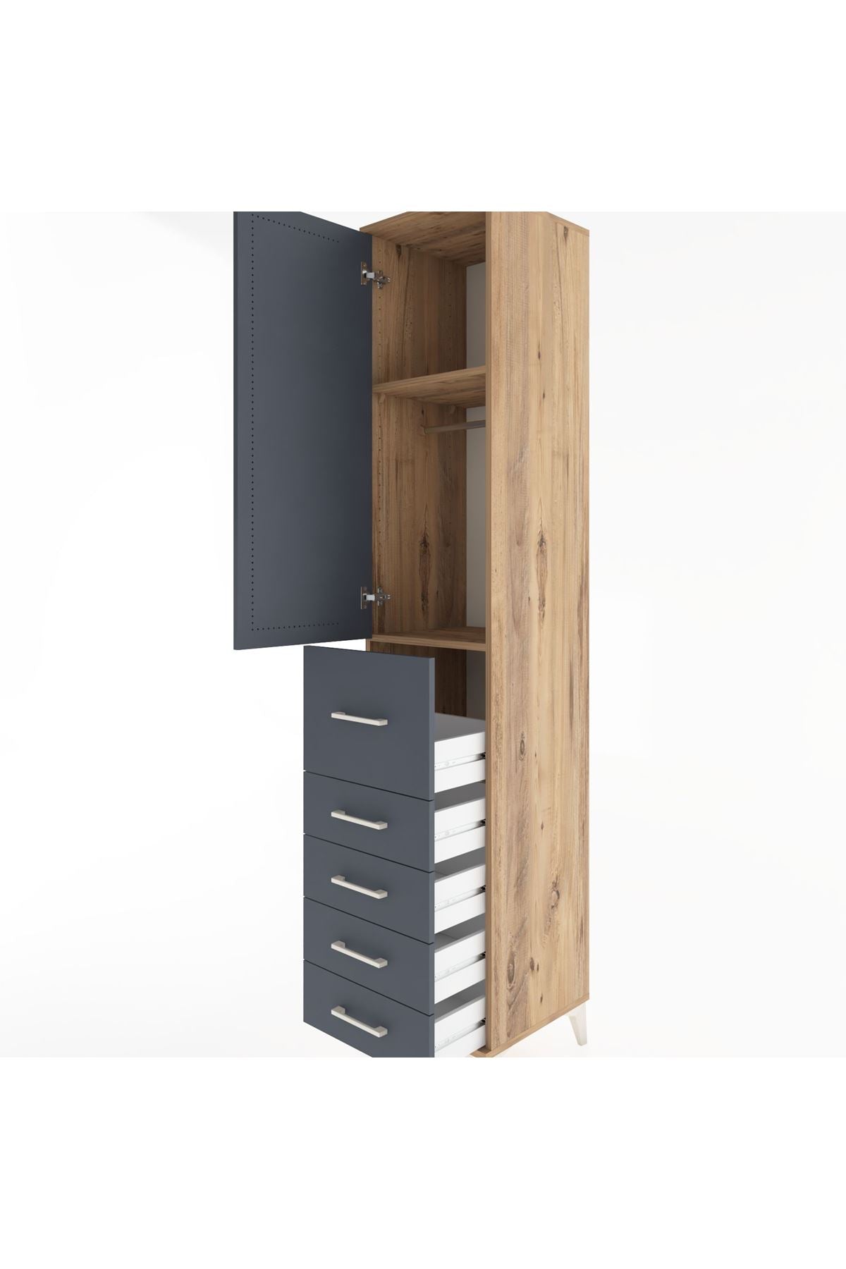 Hyperion Dolap 2 Raflı 5 Çekmeceli Tek Askılı 44x44x221 Çam-Antrasit
