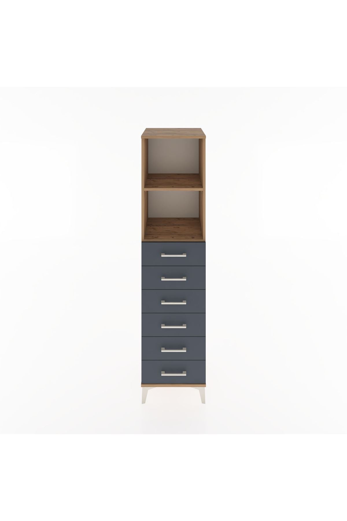 Hyperion Dolap 2 Raflı 6 Çekmeceli 44x44x182 Çam-Antrasit