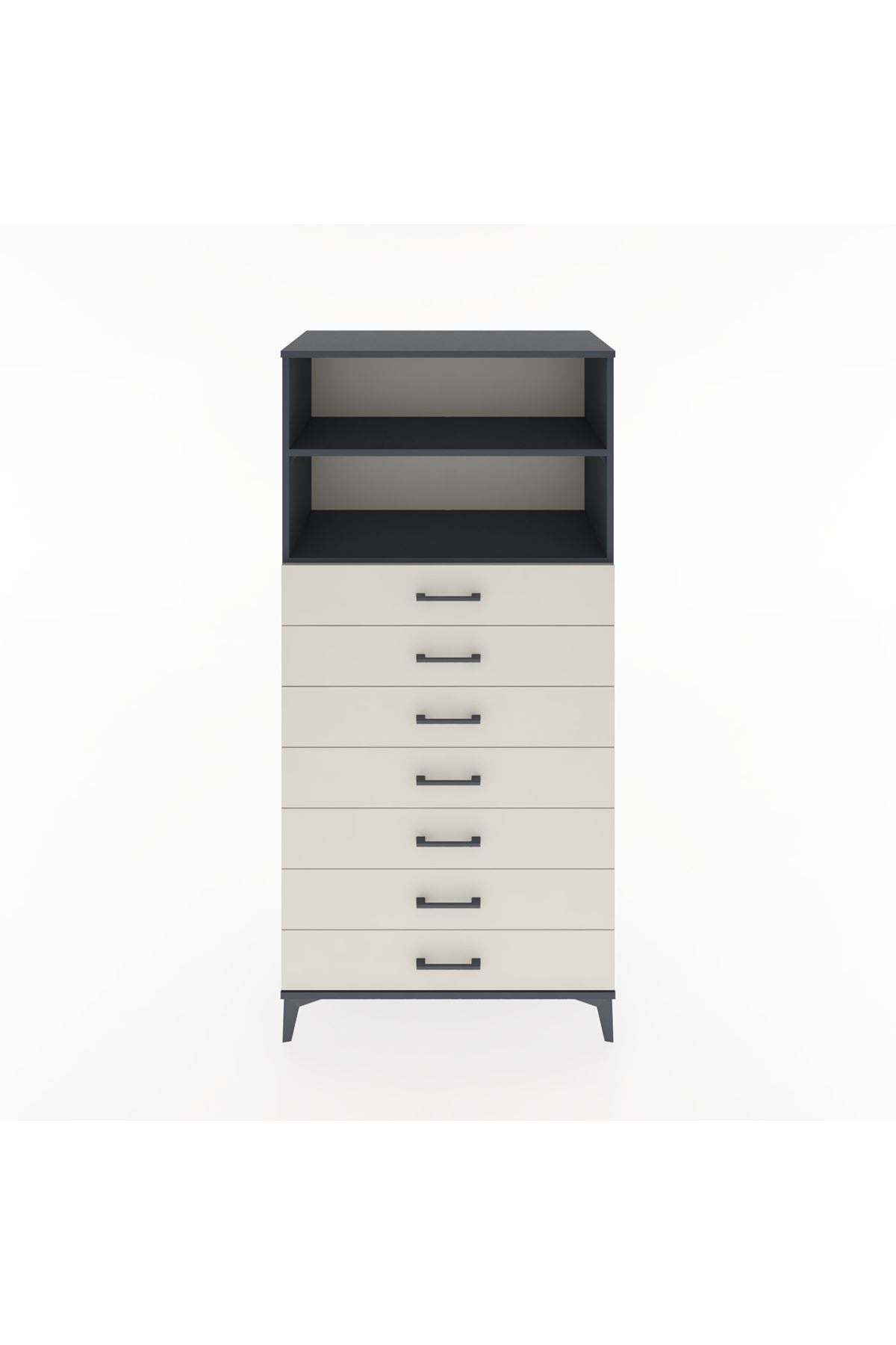 Hyperion Dolap 2 Raflı 7 Çekmeceli 88x44x182 Antrasit-Aytaşı