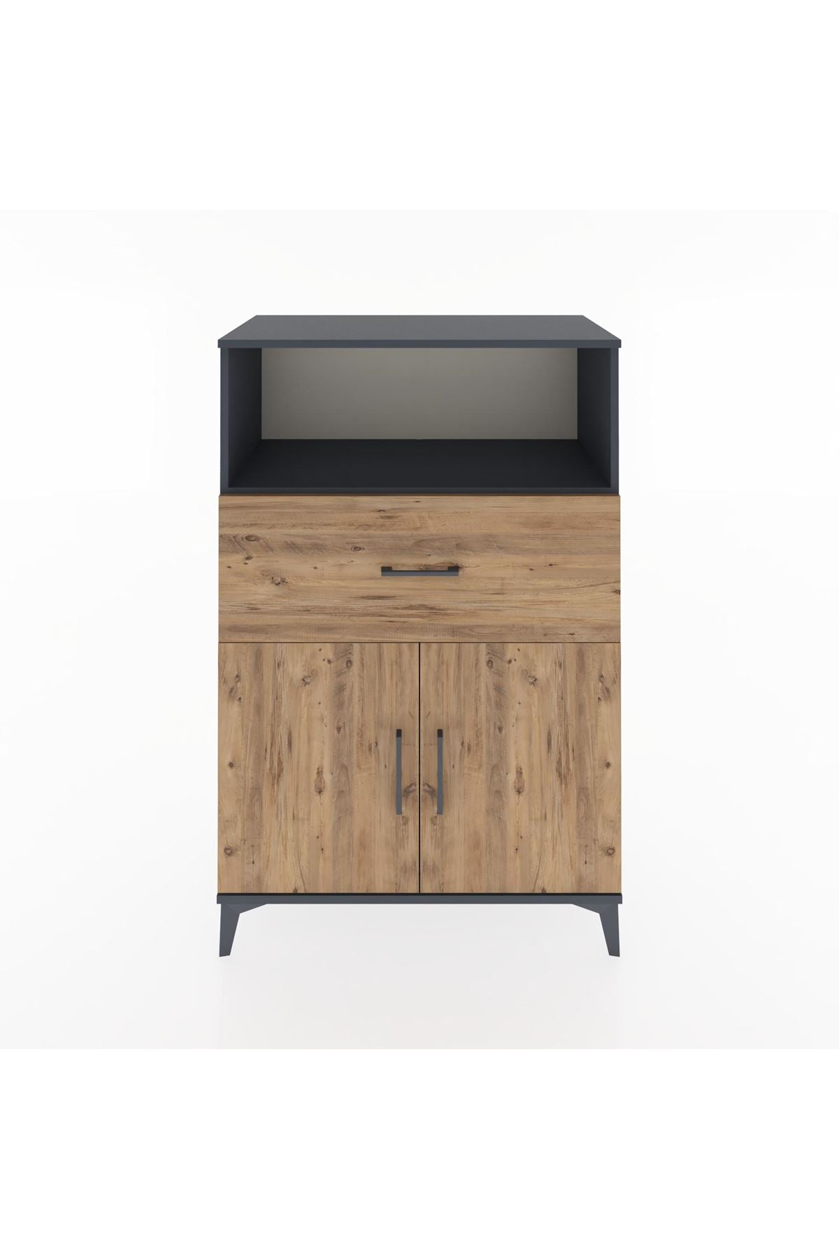Hyperion Dolap 2 Raflı Tek Çekmeceli 2 Kapaklı 88x44x134 Antrasit-Çam