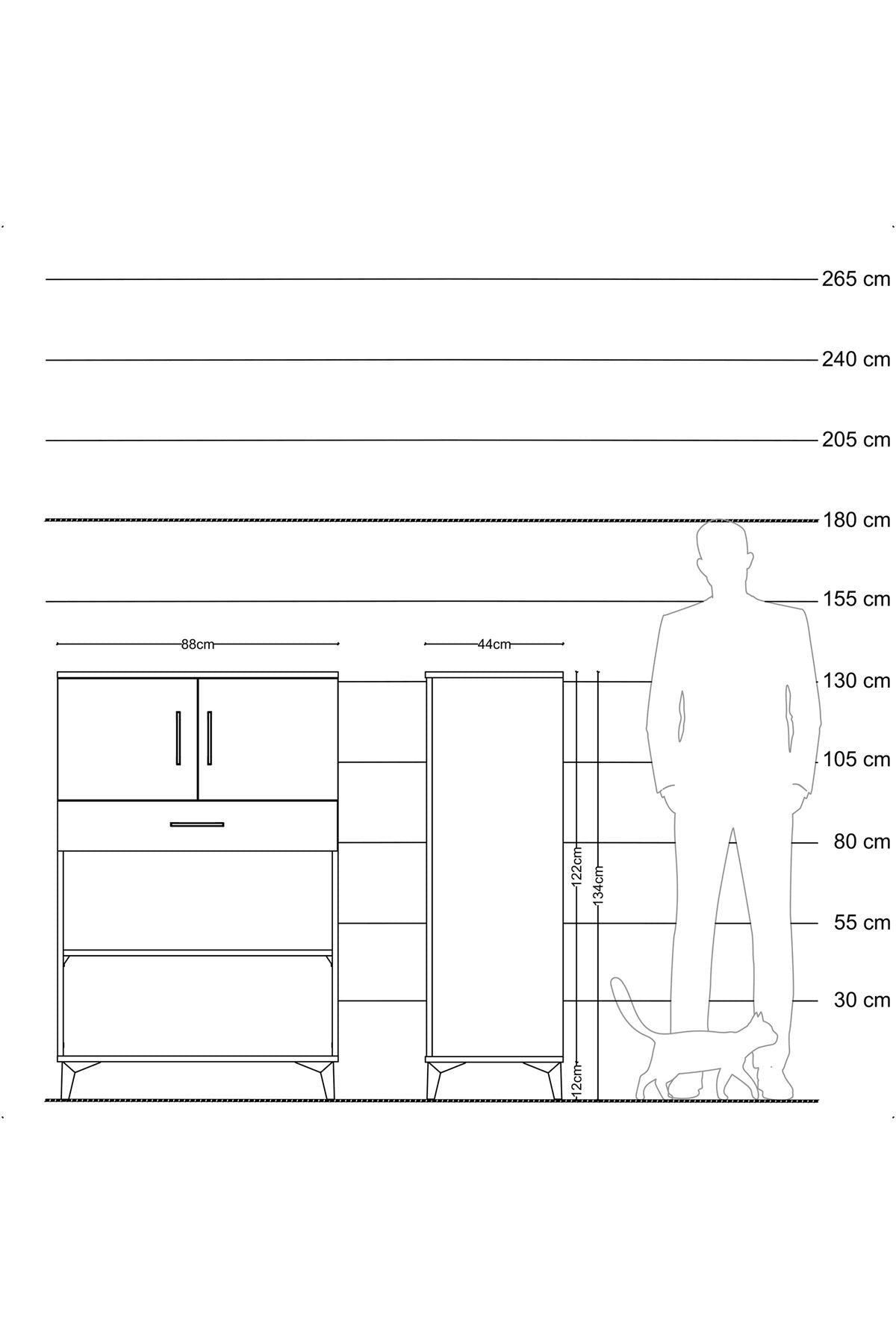 Hyperion Dolap 2 Raflı Tek Çekmeceli 2 Kapaklı 88x44x134 Aytaşı-Çam