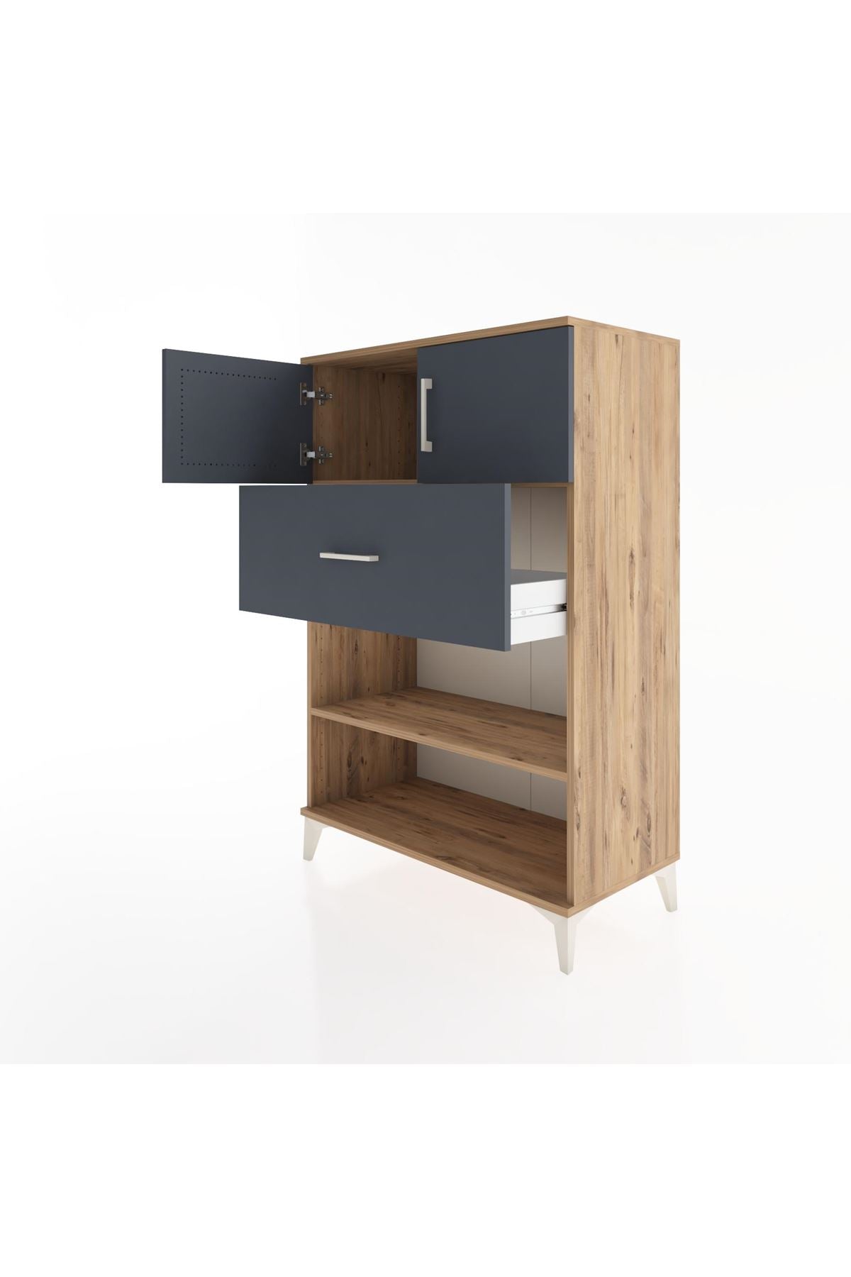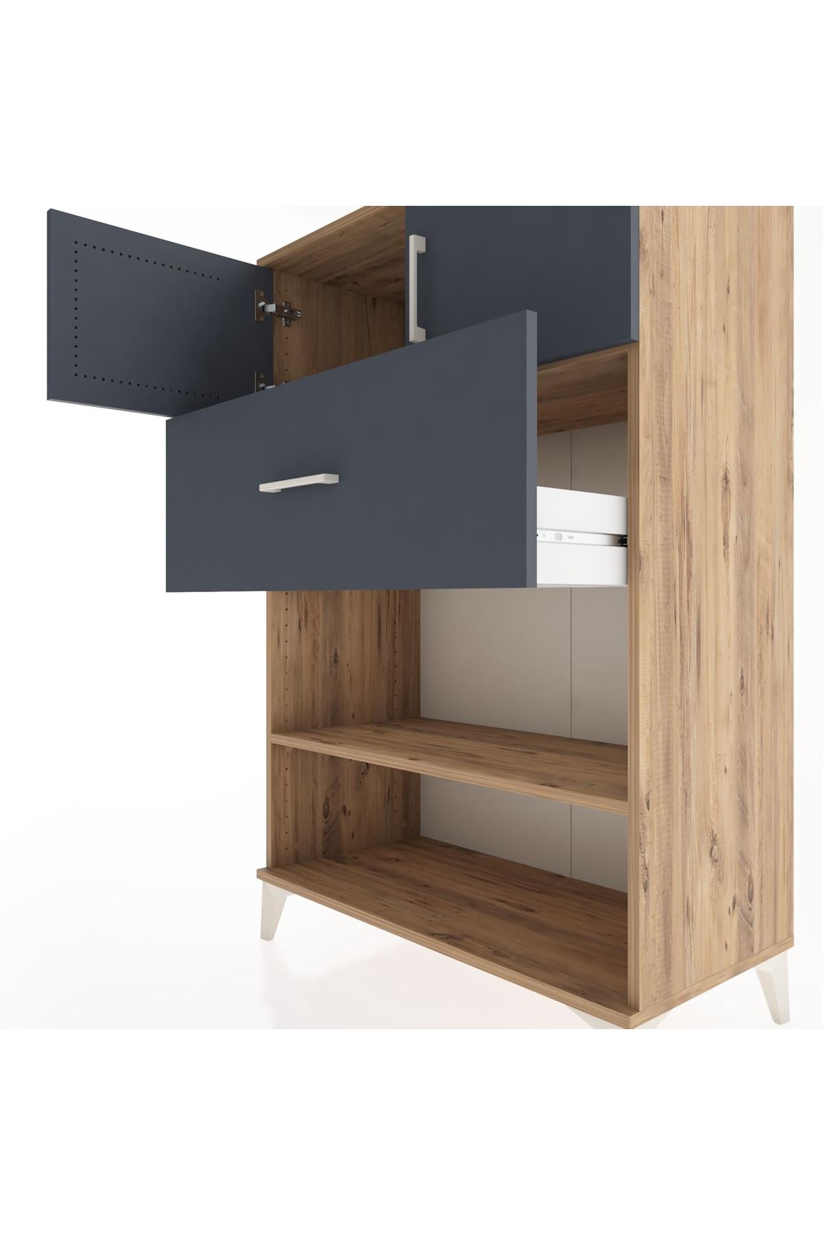 Hyperion Dolap 2 Raflı Tek Çekmeceli 2 Kapaklı 88x44x134 Çam-Antrasit