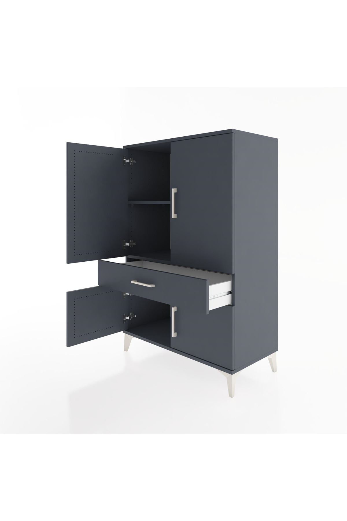 Hyperion Dolap 2 Raflı Tek Çekmeceli 4 Kapaklı 88x44x134 Antrasit-Antrasit