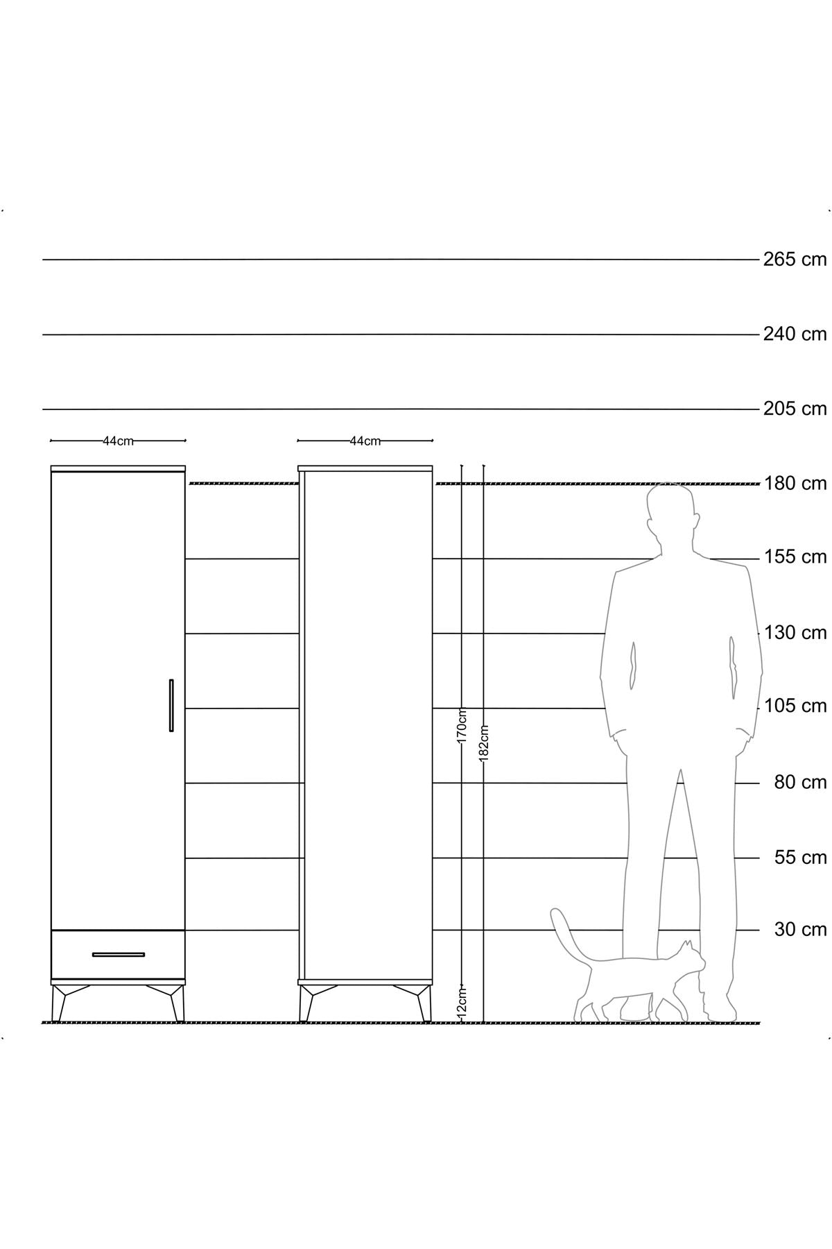 Hyperion Dolap 2 Raflı Tek Çekmeceli Tek Askılı 44x44x182 Antrasit-Çam