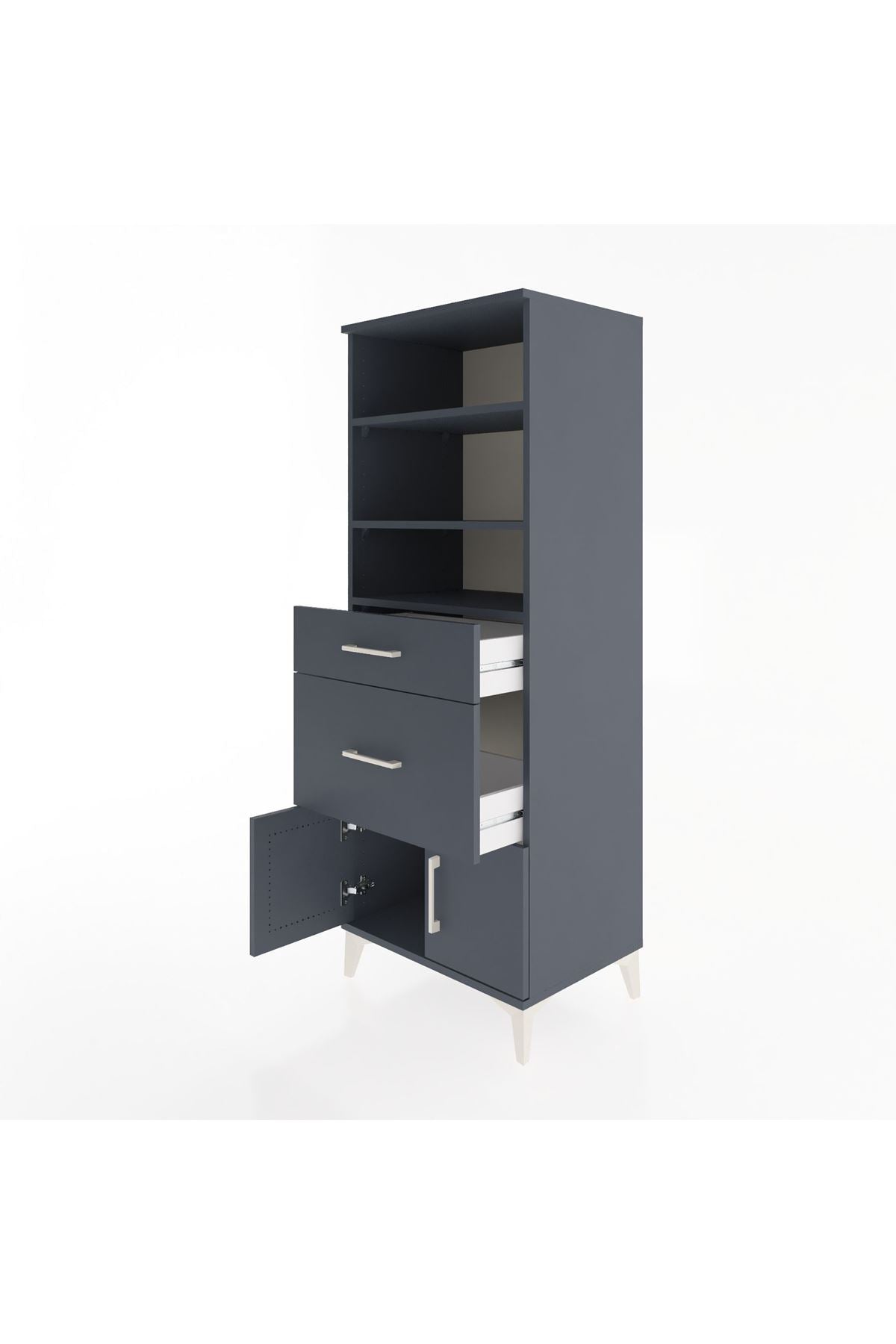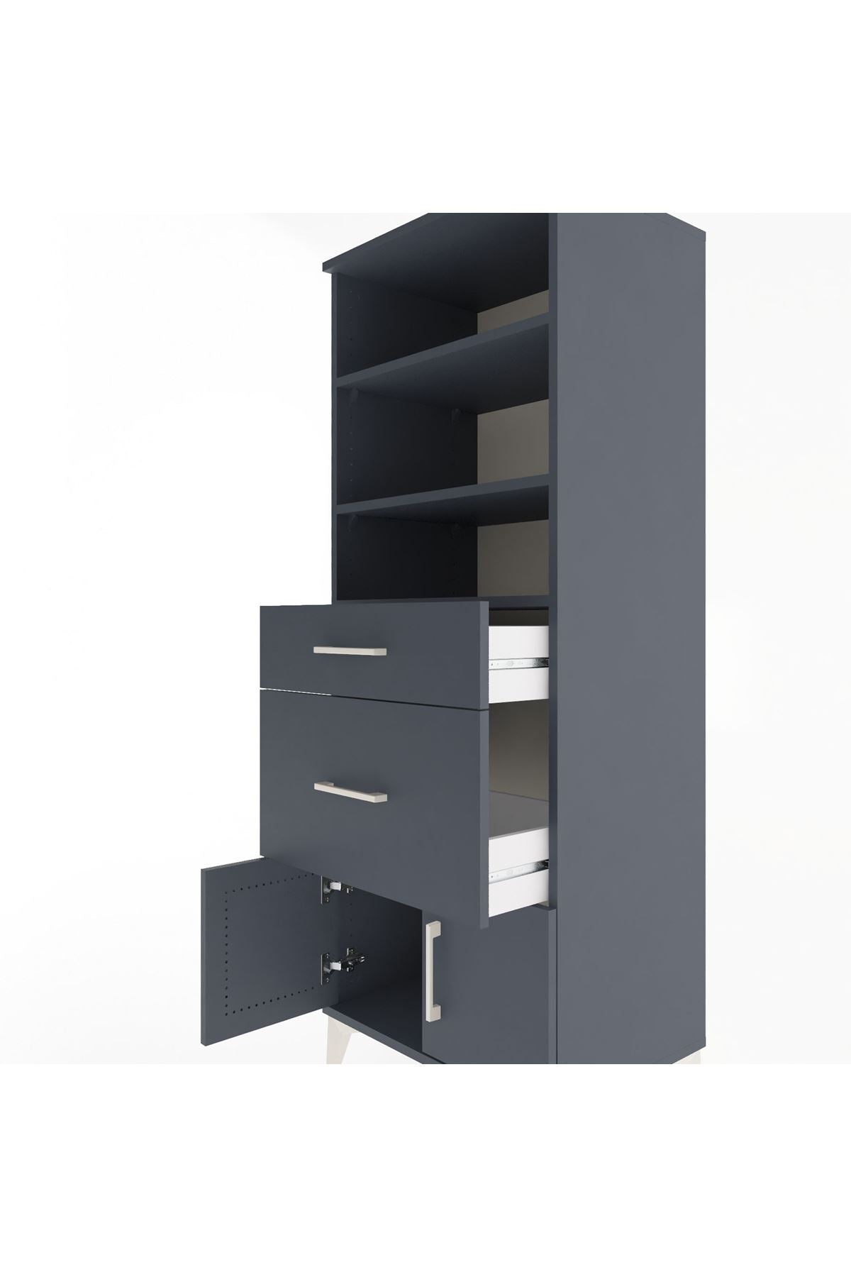 Hyperion Dolap 3 Raflı 2 Çekmeceli 2 Kapaklı 60x44x163 Antrasit-Antrasit