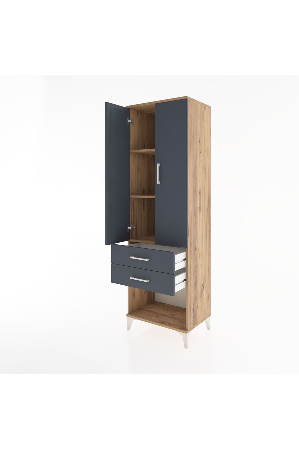 Hyperion Dolap 3 Raflı 2 Çekmeceli 2 Kapaklı 60x44x195 Çam-Antrasit