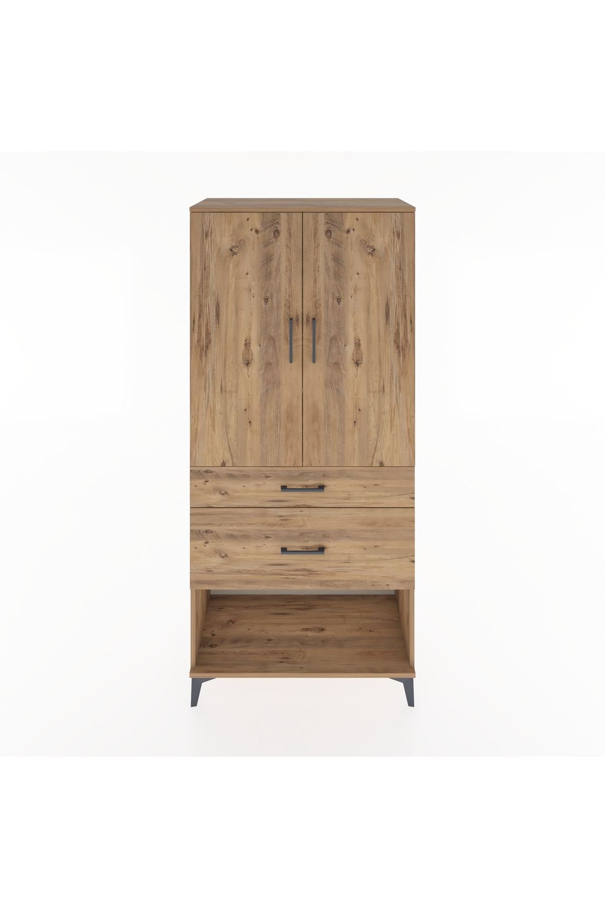 Hyperion Dolap 3 Raflı 2 Çekmeceli 2 Kapaklı 88x44x195 Çam-Çam