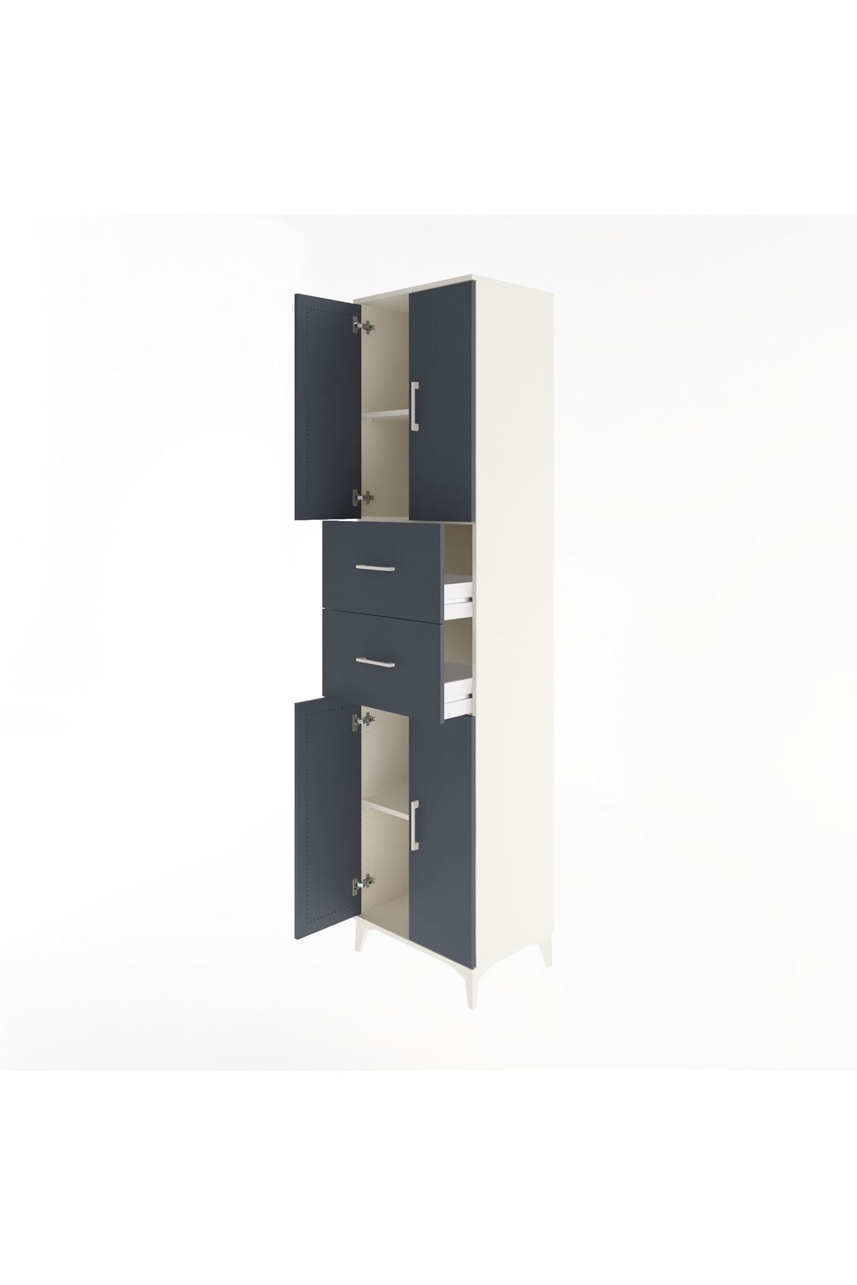 Hyperion Dolap 3 Raflı 2 Çekmeceli 4 Kapaklı 60x44x243 Aytaşı-Antrasit