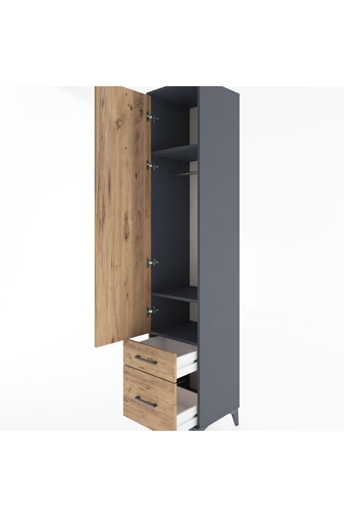 Hyperion Dolap 3 Raflı 2 Çekmeceli Tek Askılı 44x44x221 Antrasit-Çam