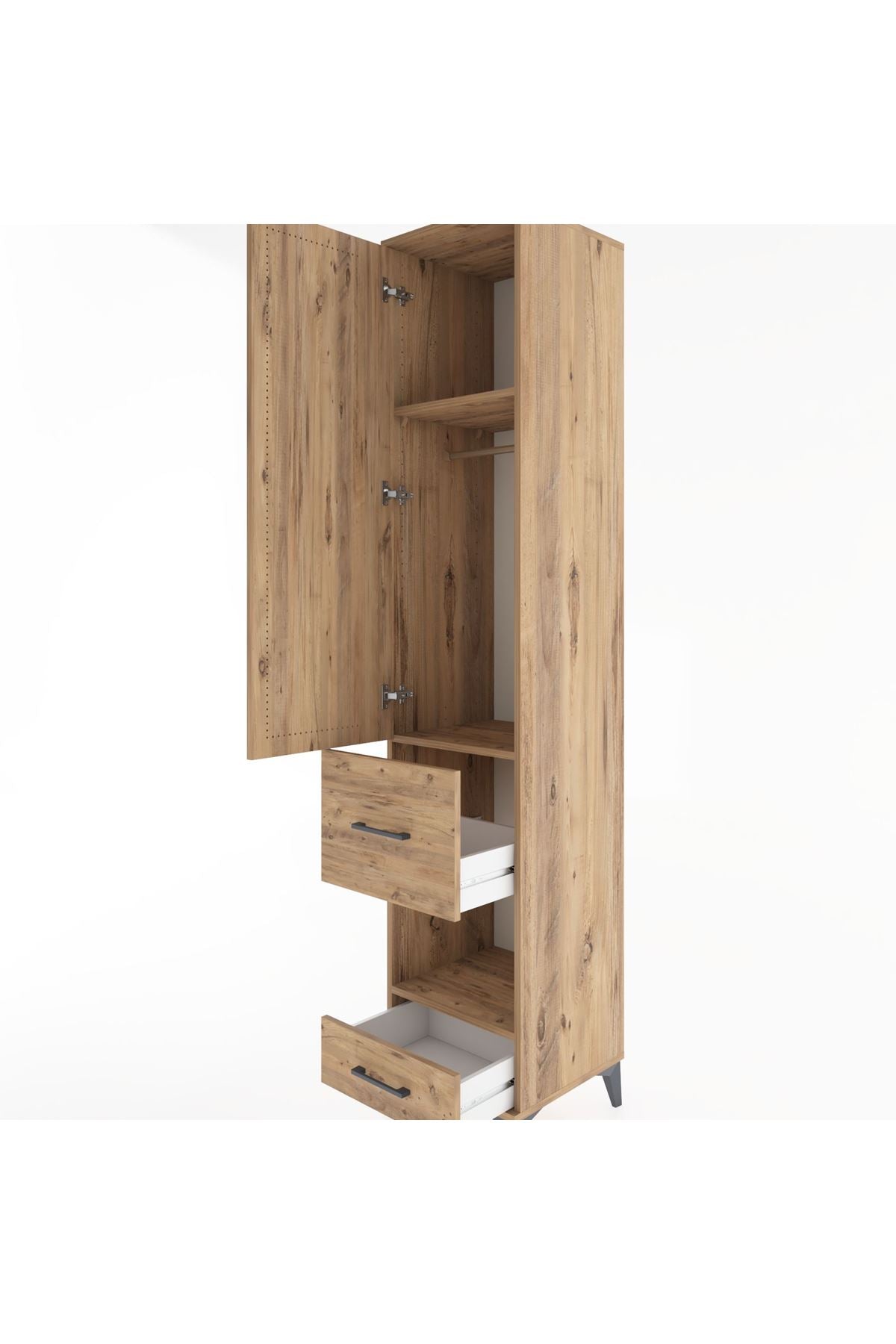Hyperion Dolap 3 Raflı 2 Çekmeceli Tek Askılı 44x44x221 Çam-Çam