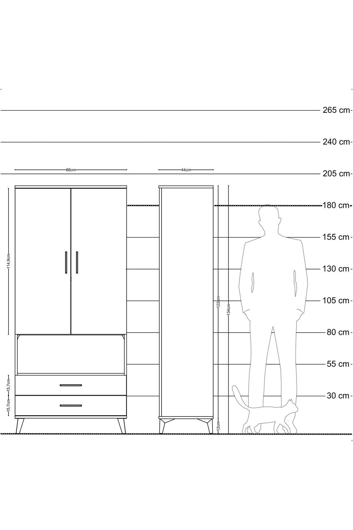 Hyperion Dolap 3 Raflı 2 Çekmeceli Tek Askılı 88x44x195 Antrasit-Antrasit