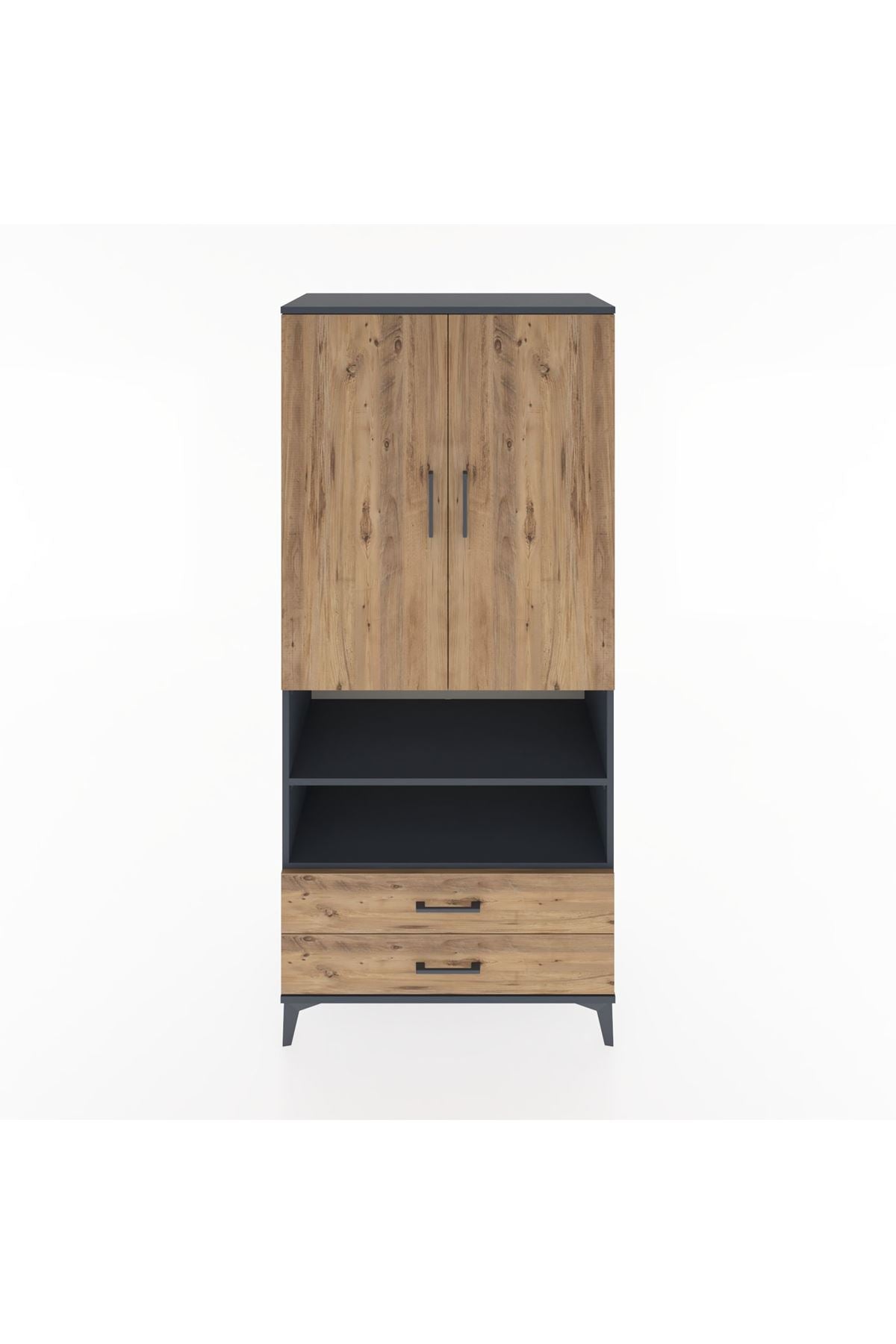 Hyperion Dolap 3 Raflı 2 Çekmeceli Tek Askılı 88x44x195 Antrasit-Çam