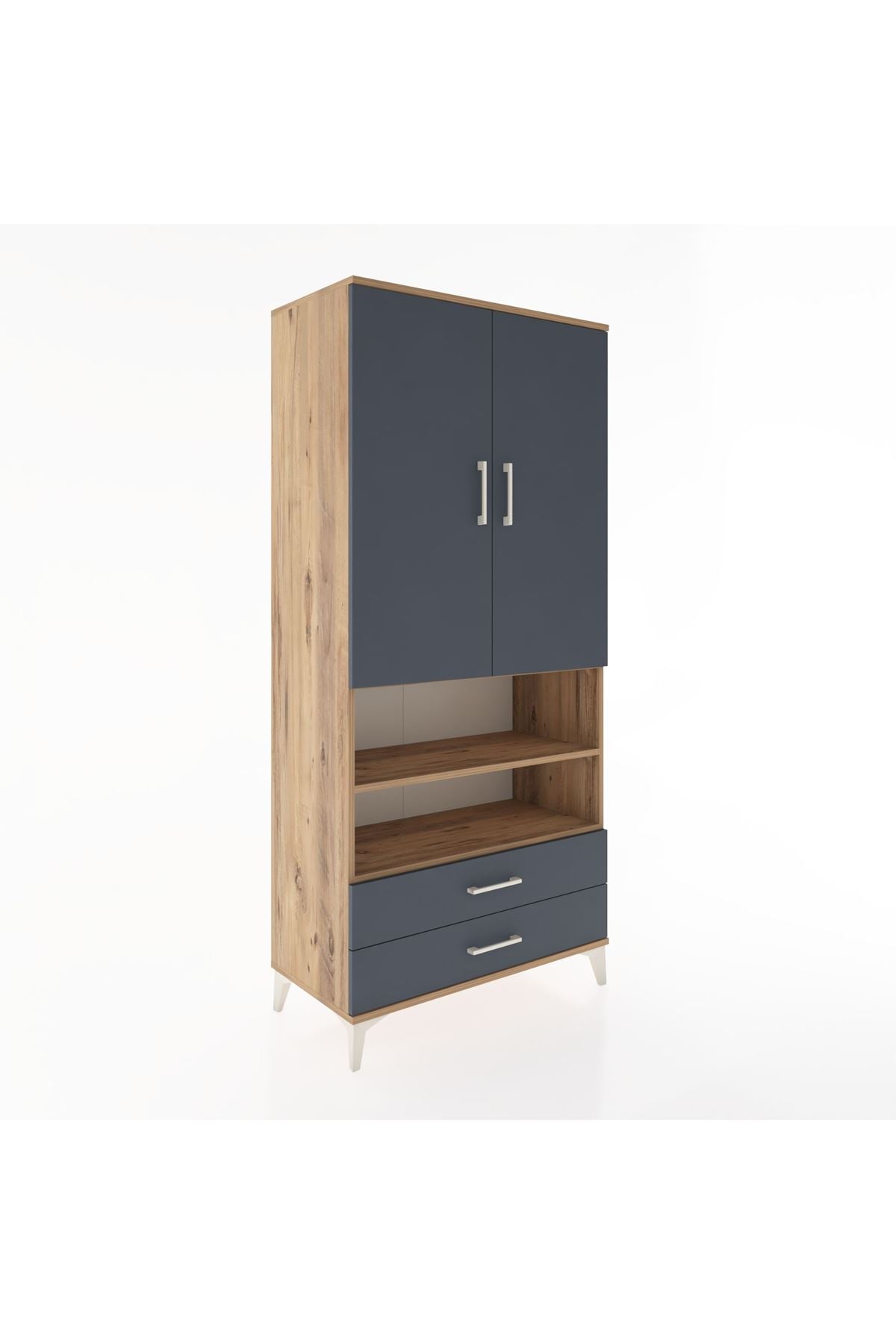 Hyperion Dolap 3 Raflı 2 Çekmeceli Tek Askılı 88x44x195 Çam-Antrasit