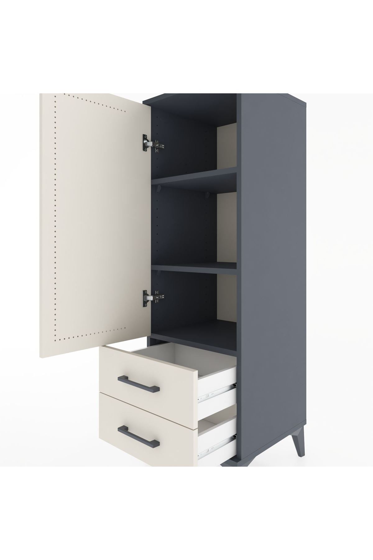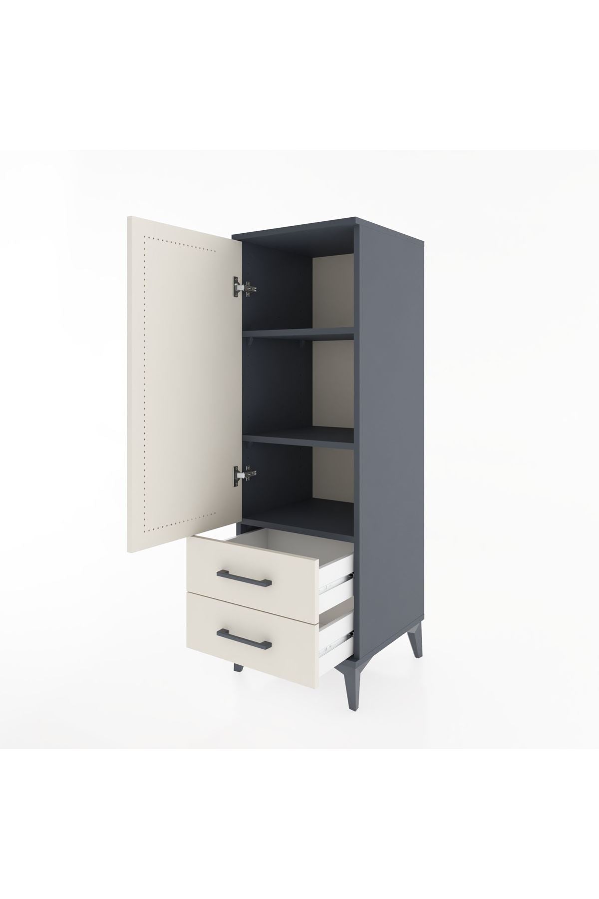 Hyperion Dolap 3 Raflı 2 Çekmeceli Tek Kapaklı 44x44x134 Antrasit-Aytaşı
