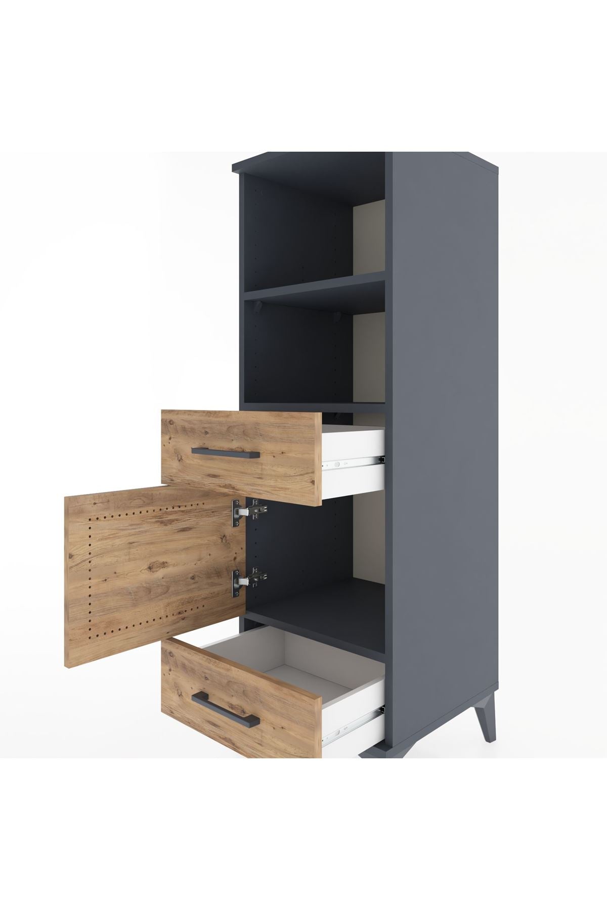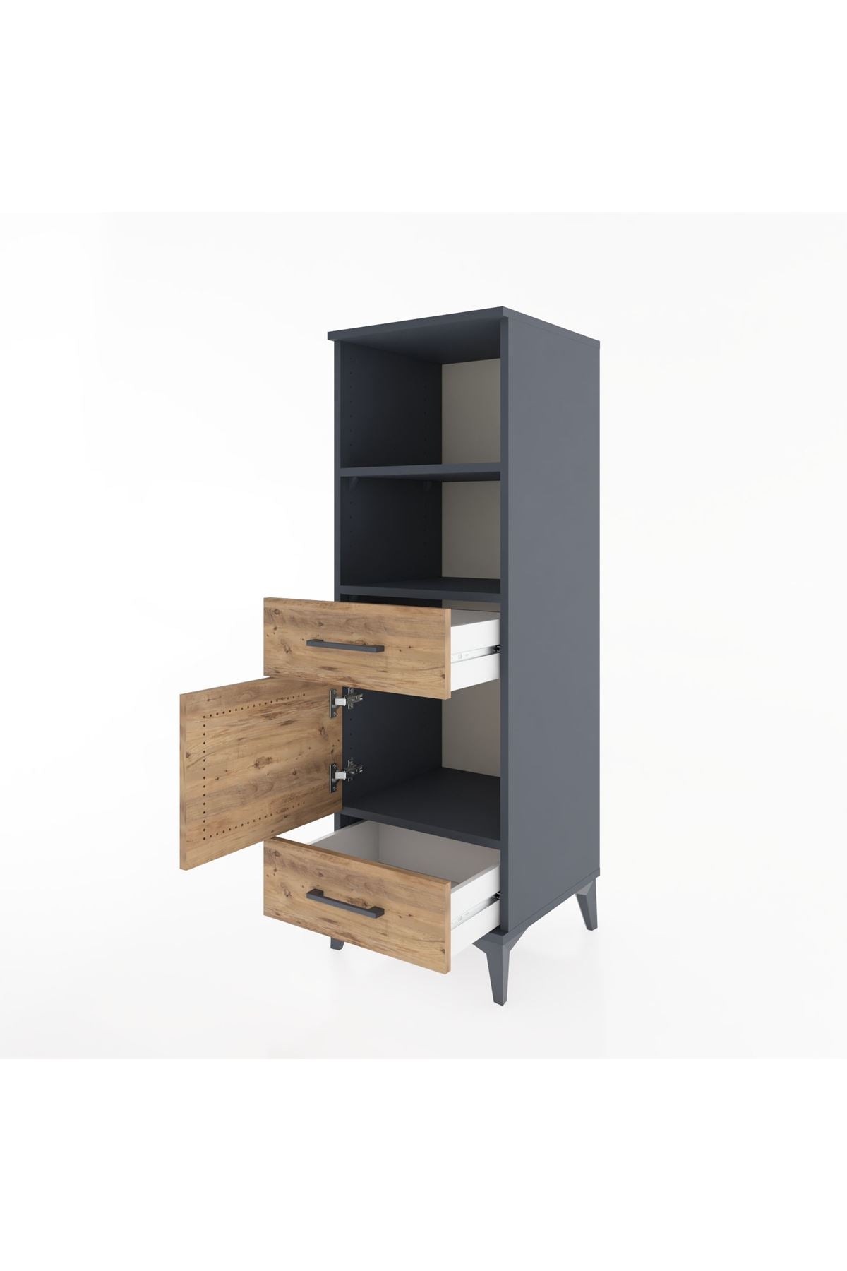 Hyperion Dolap 3 Raflı 2 Çekmeceli Tek Kapaklı 44x44x134 Antrasit-Çam