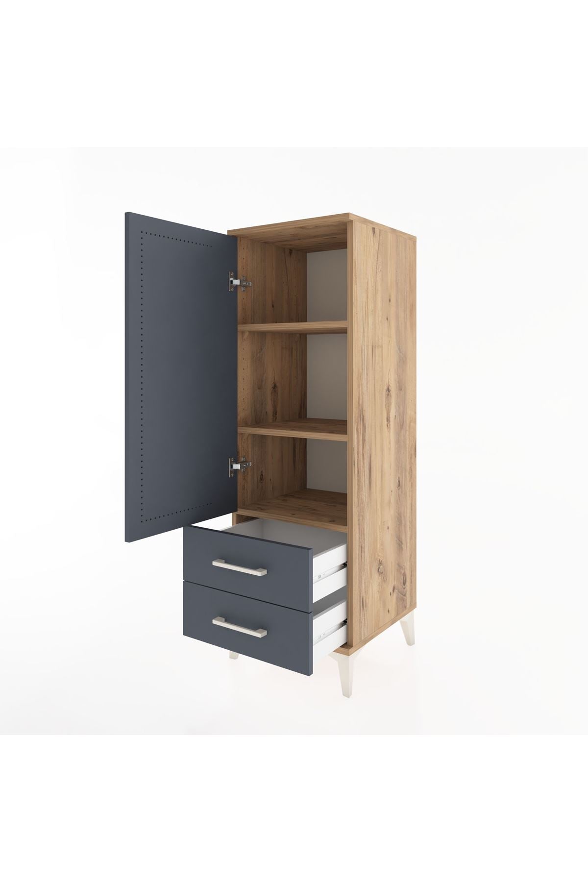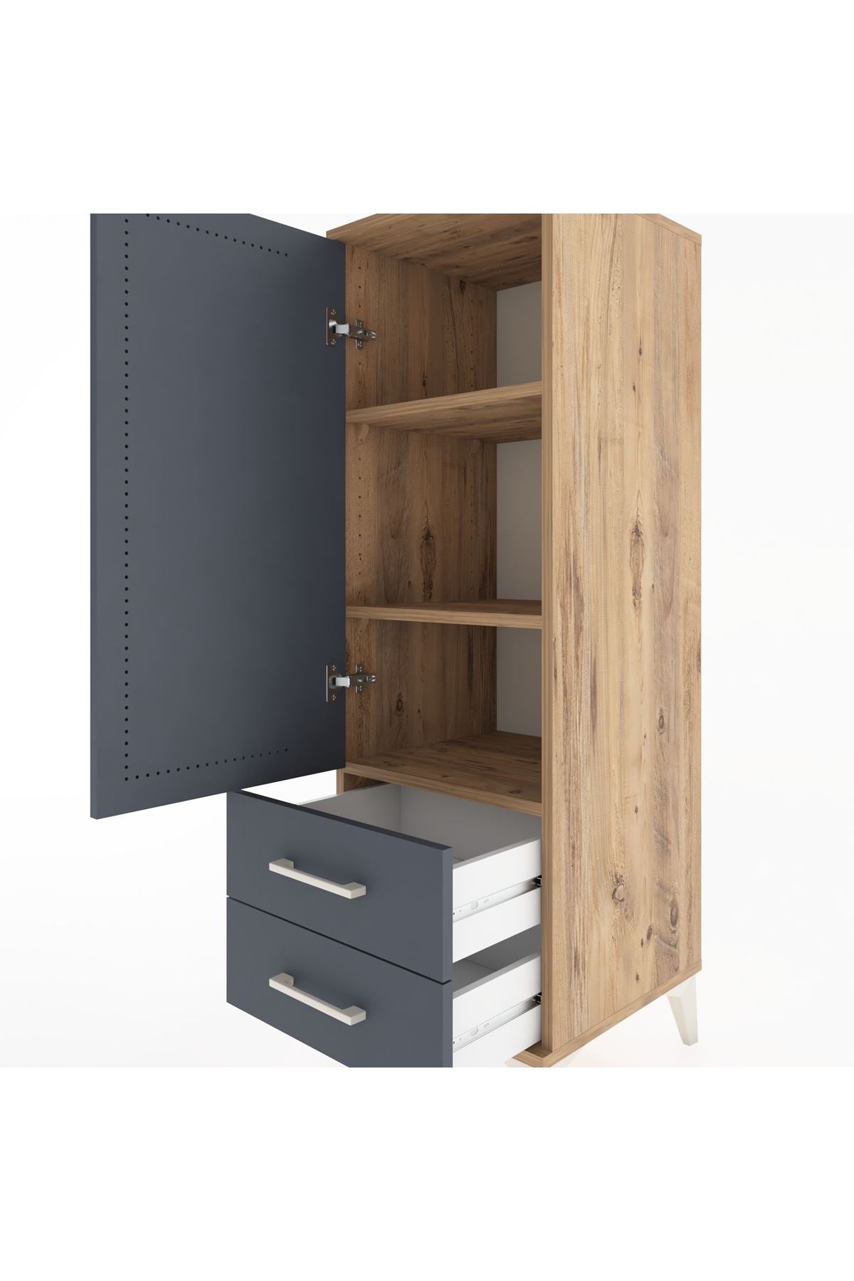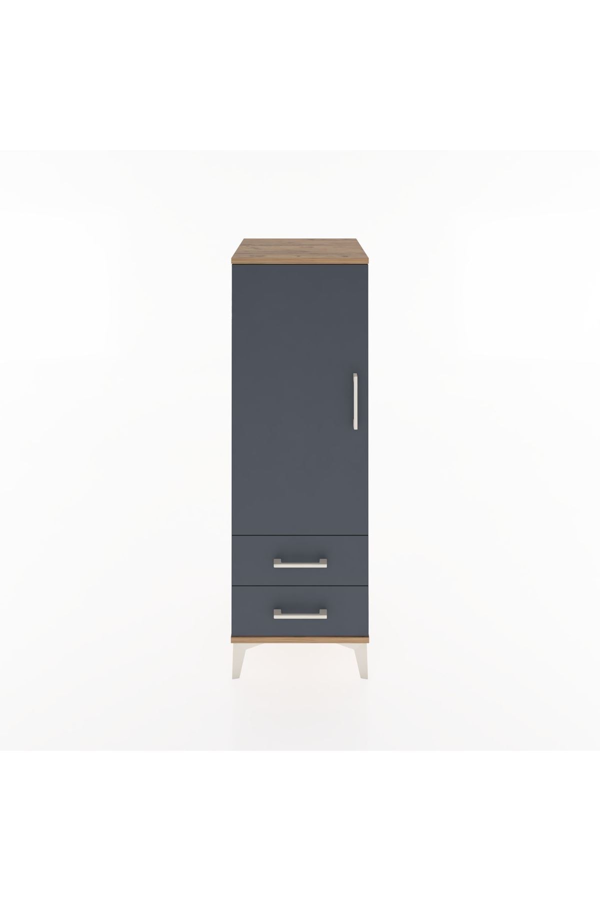 Hyperion Dolap 3 Raflı 2 Çekmeceli Tek Kapaklı 44x44x134 Çam-Antrasit