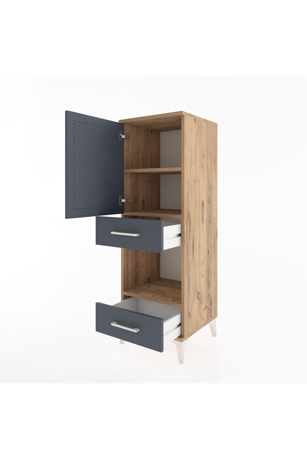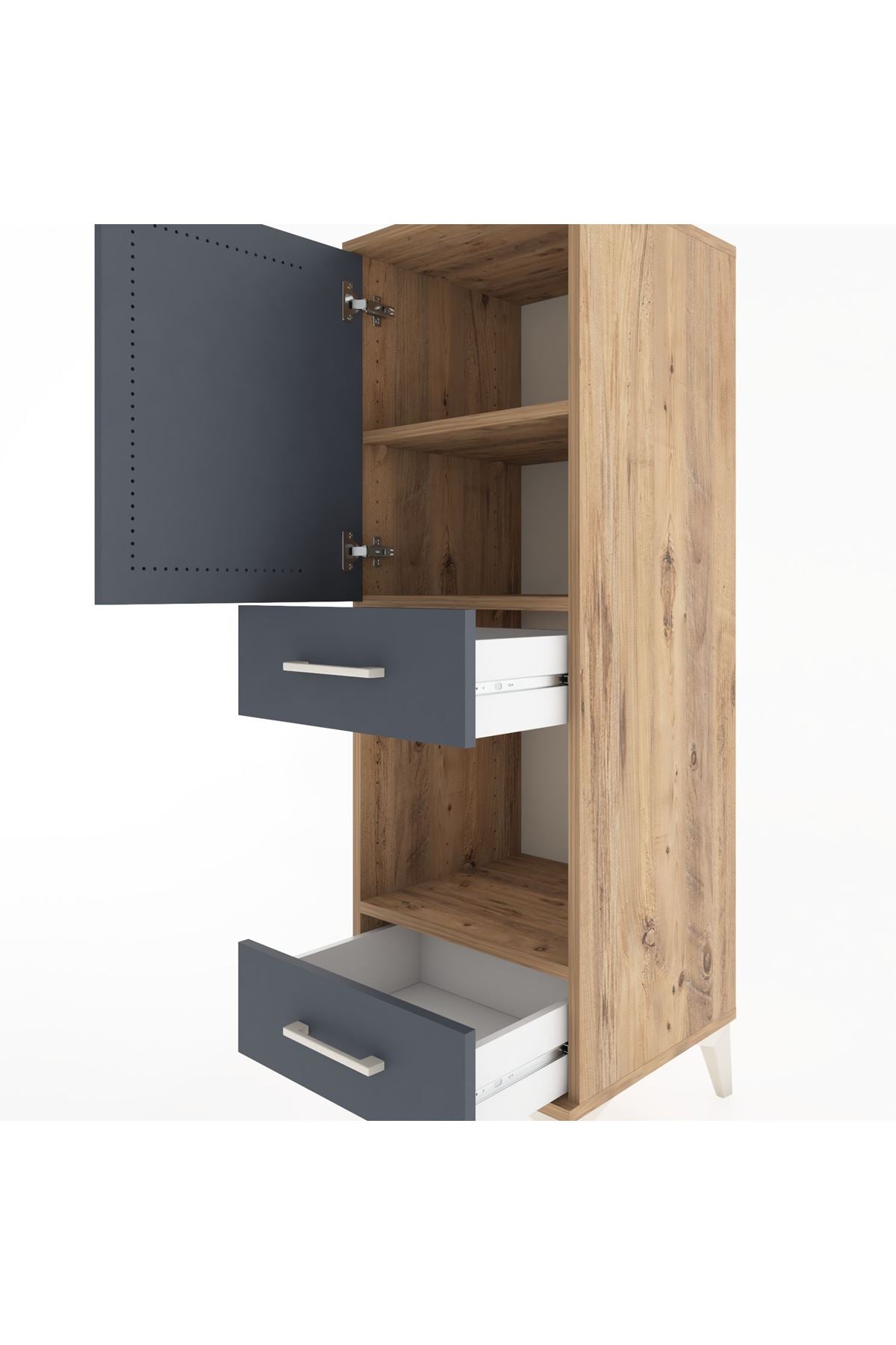 Hyperion Dolap 3 Raflı 2 Çekmeceli Tek Kapaklı 44x44x134 Çam-Antrasit
