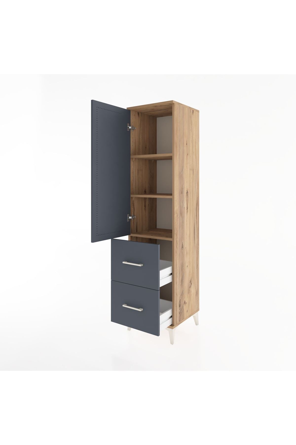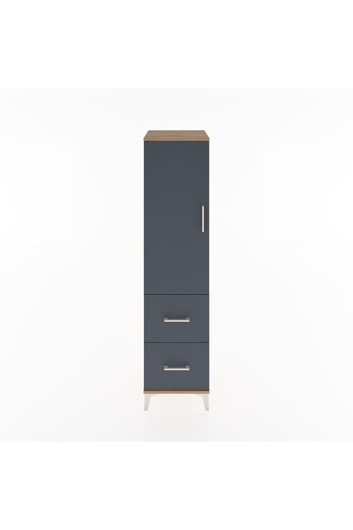 Hyperion Dolap 3 Raflı 2 Çekmeceli Tek Kapaklı 44x44x182 Çam-Antrasit