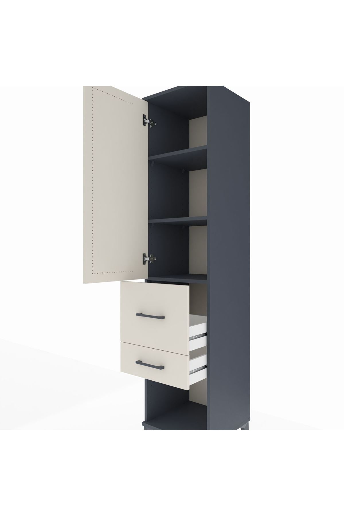 Hyperion Dolap 3 Raflı 2 Çekmeceli Tek Kapaklı 44x44x195 Antrasit-Aytaşı