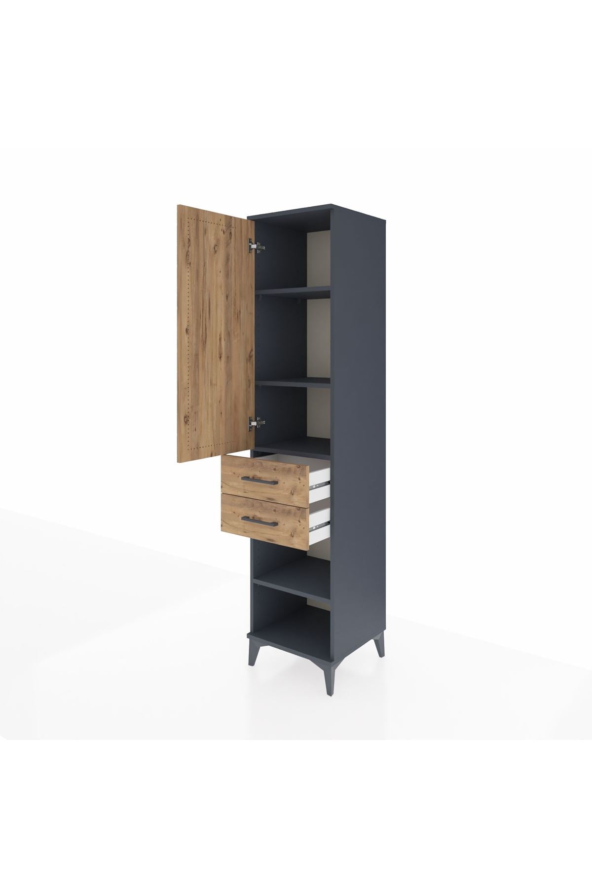Hyperion Dolap 3 Raflı 2 Çekmeceli Tek Kapaklı 44x44x195 Antrasit-Çam