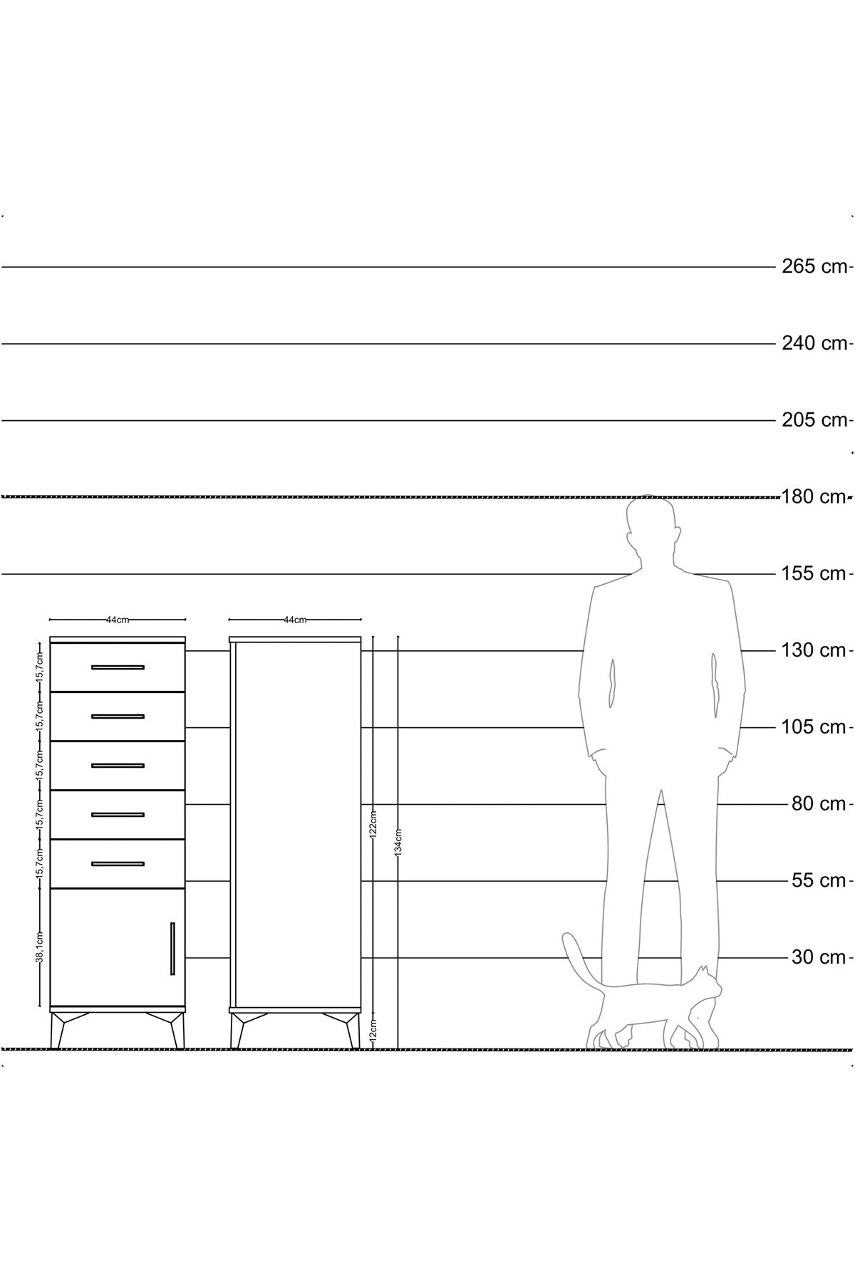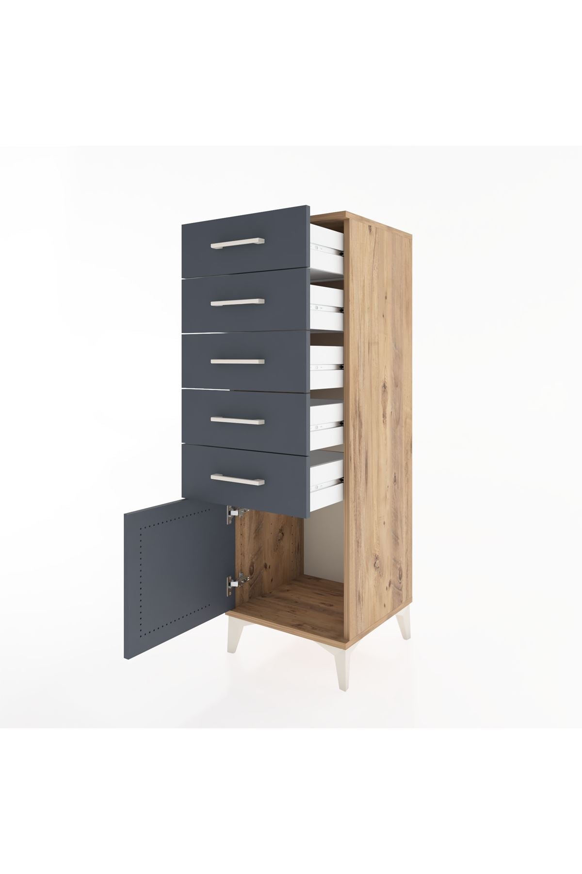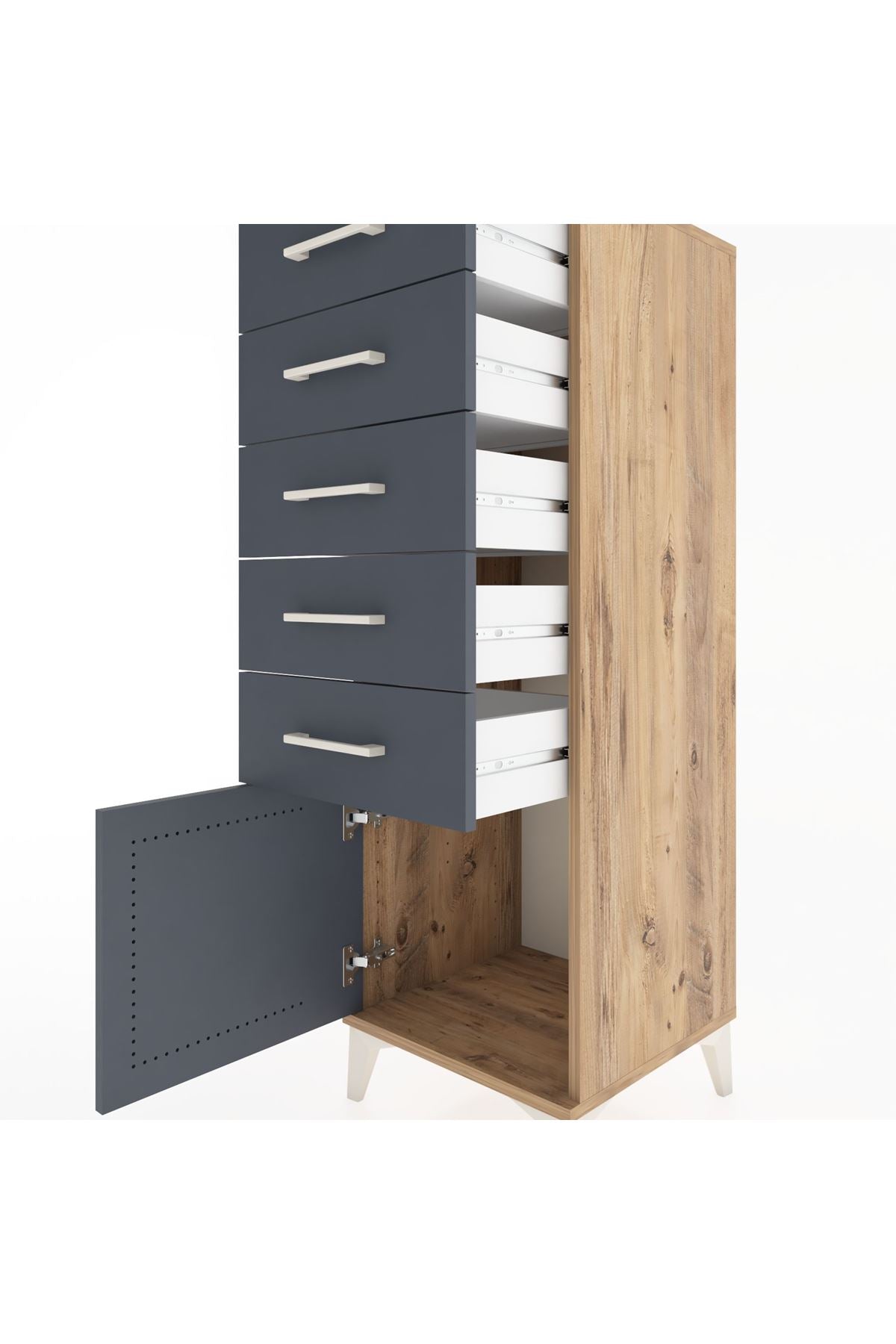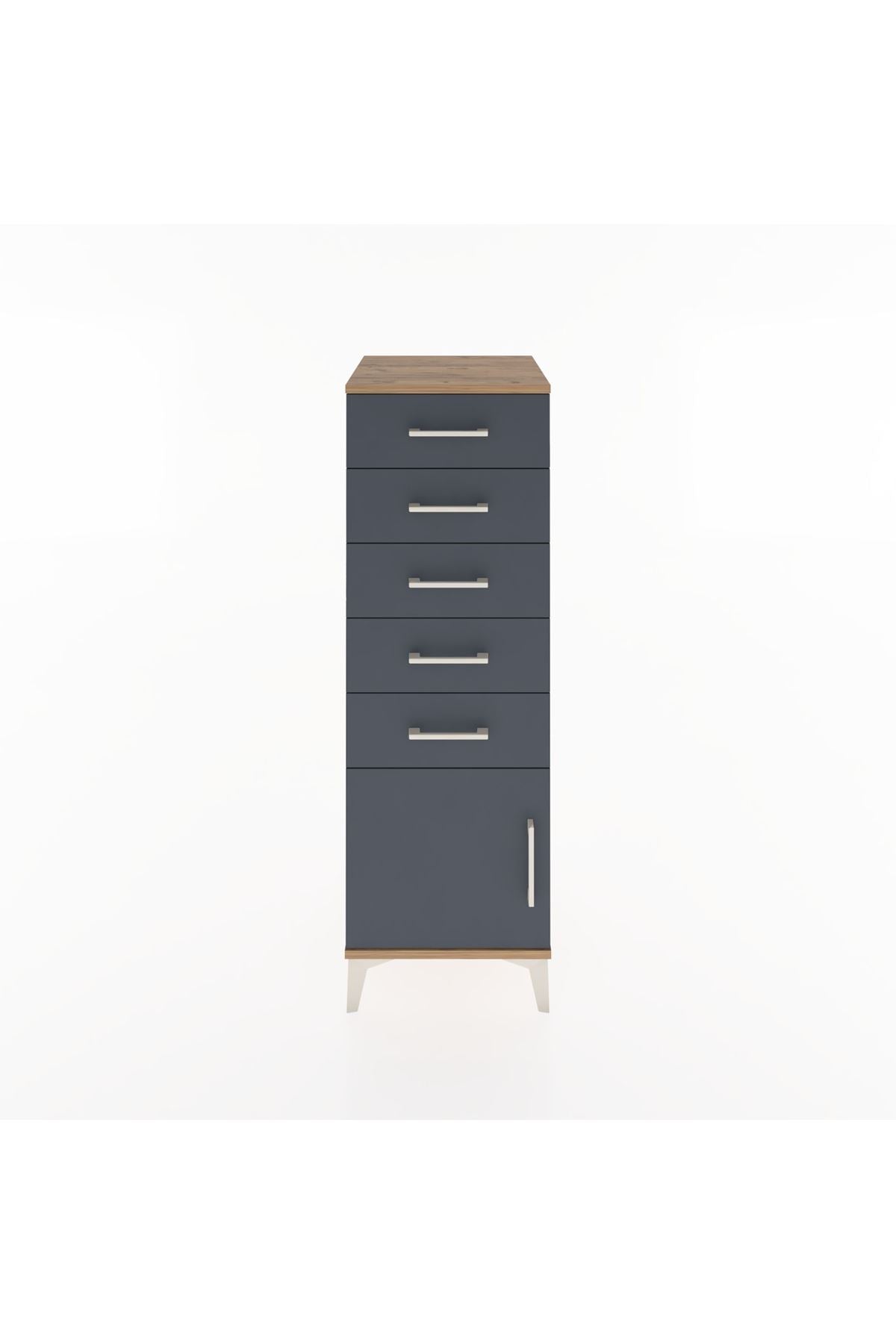 Hyperion Dolap 5 Çekmeceli Tek Kapaklı 44x44x134 Çam-Antrasit