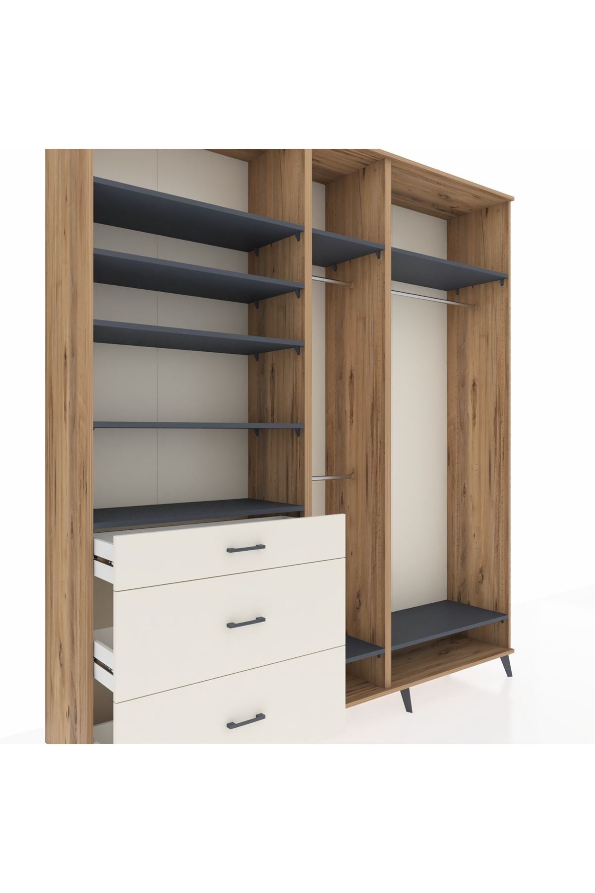 Hyperion Dolap 9 Raflı 3 Çekmeceli 3 Askılı 220x44x243 Çam-Antrasit/Aytaşı