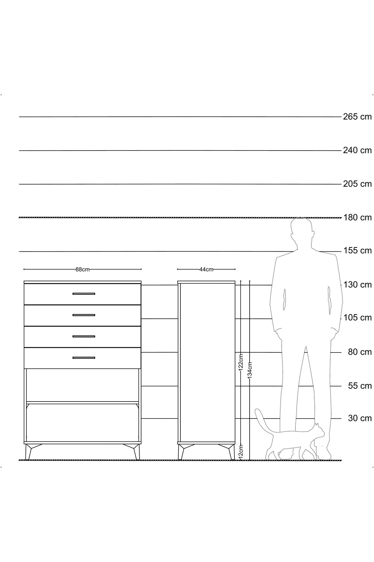 Hyperion Dolap Tek Raflı 4 Çekmeceli 88x44x134 Antrasit-Çam