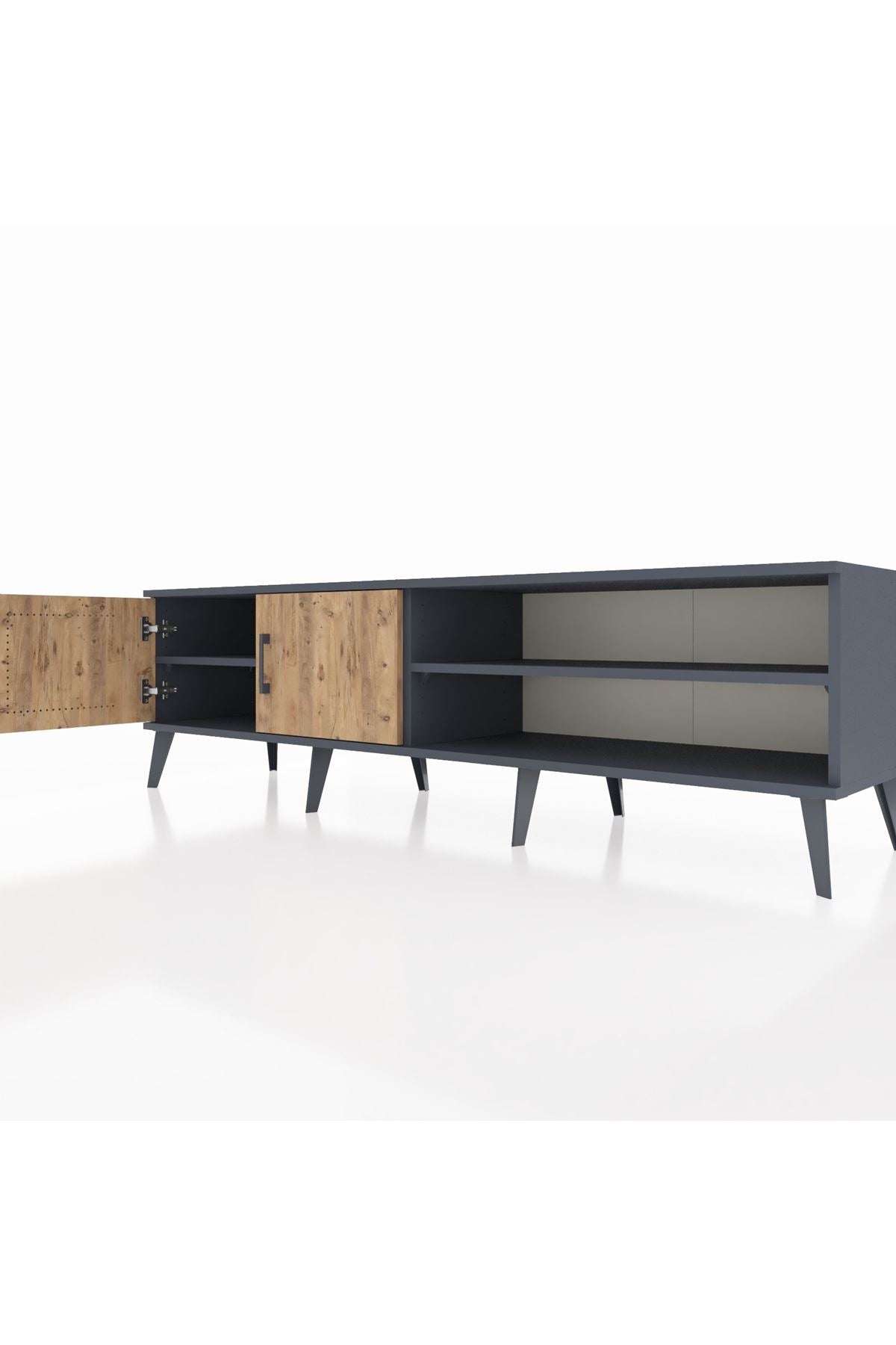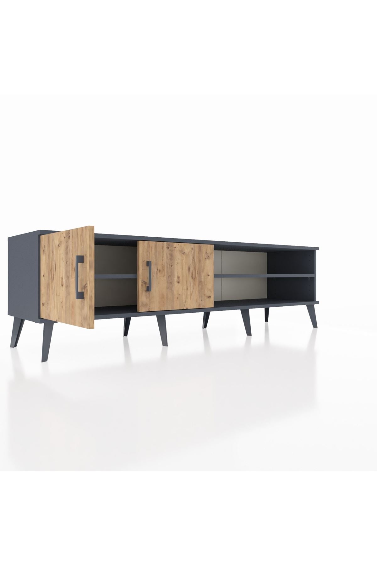 Hyperion TV Ünitesi 2 Raflı 2 Kapaklı 176x44x51 Antrasit-Çam/Antrasit
