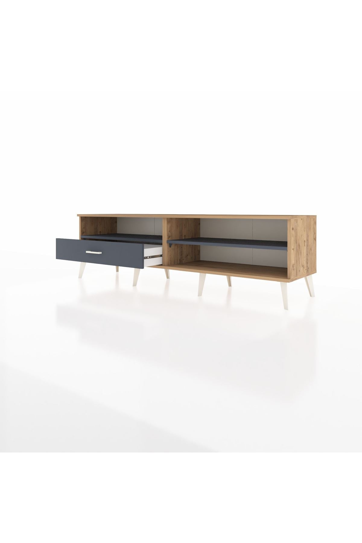✨ Hyperion TV Ünitesi, çam ve antrasit renkleriyle modern ve şık bir tasarım sunuyor. 176 cm genişliği, 2 rafı ve tek çekmecesiyle evinizin en şık köşesi olmaya aday.