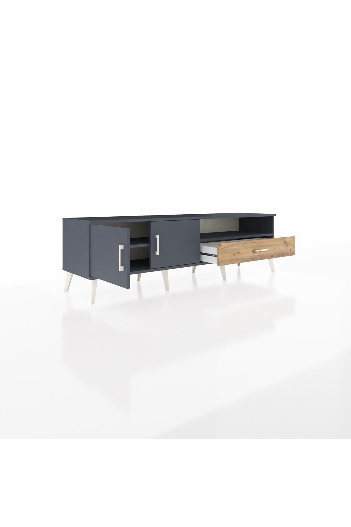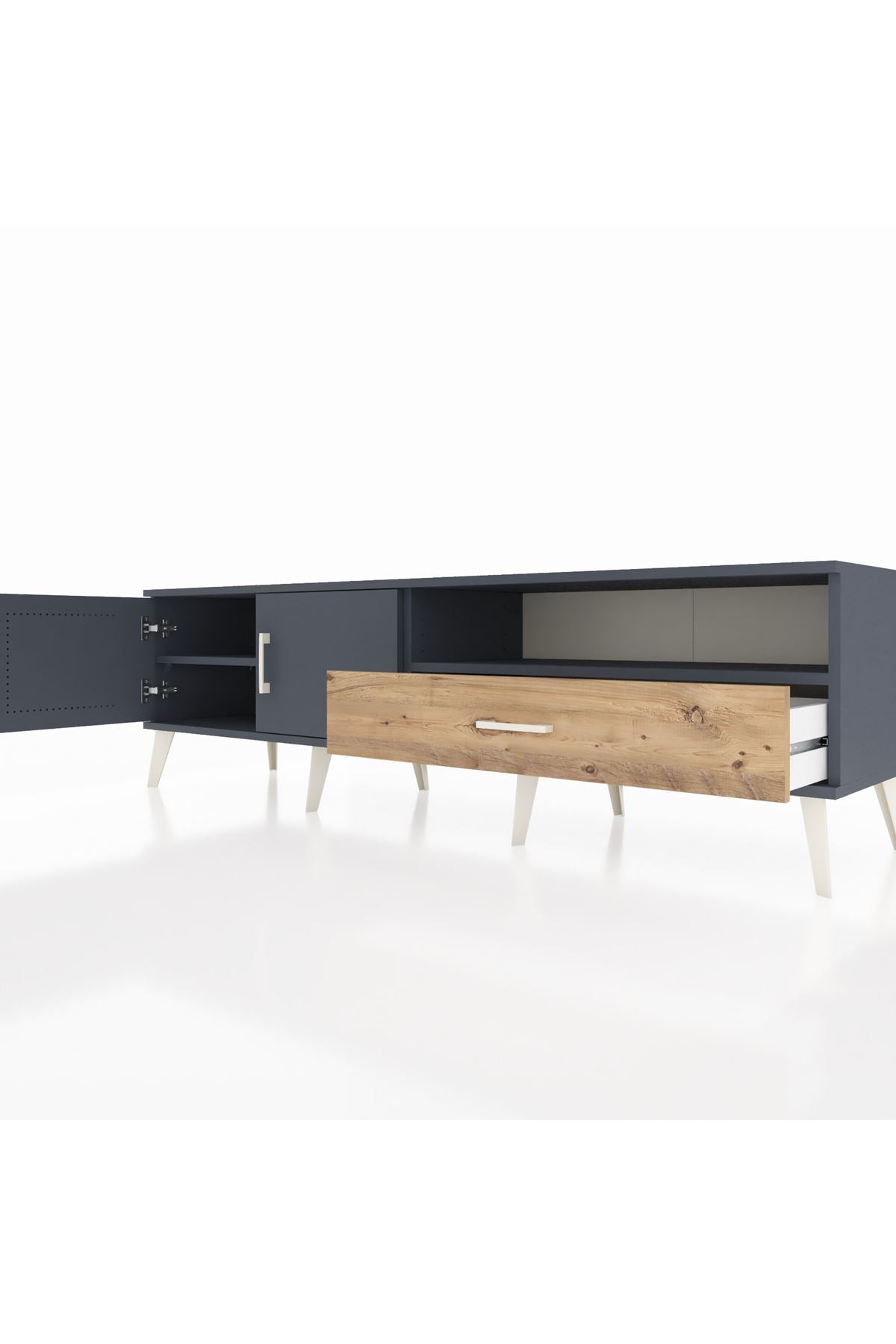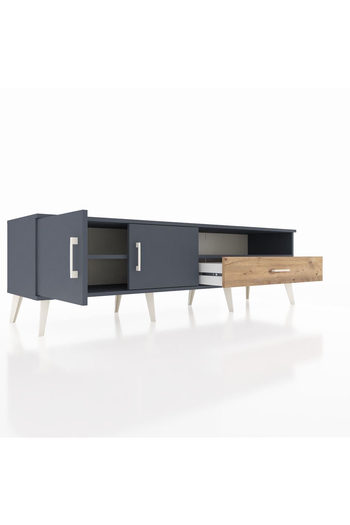Hyperion TV Ünitesi 2 Raflı Tek Çekmeceli 2 Kapaklı 176x44x51 Antrasit-Antrasit/Çam