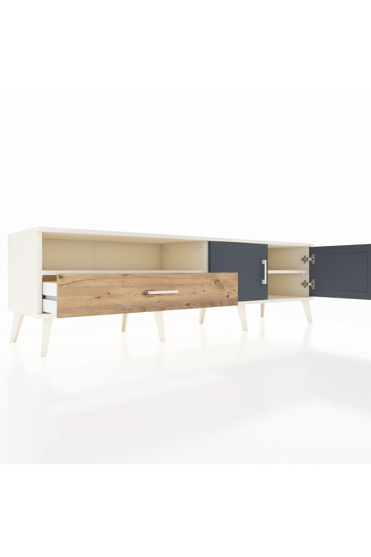 Hyperion TV Ünitesi 2 Raflı Tek Çekmeceli 2 Kapaklı 176x44x51 Aytaşı-Antrasit/Çam
