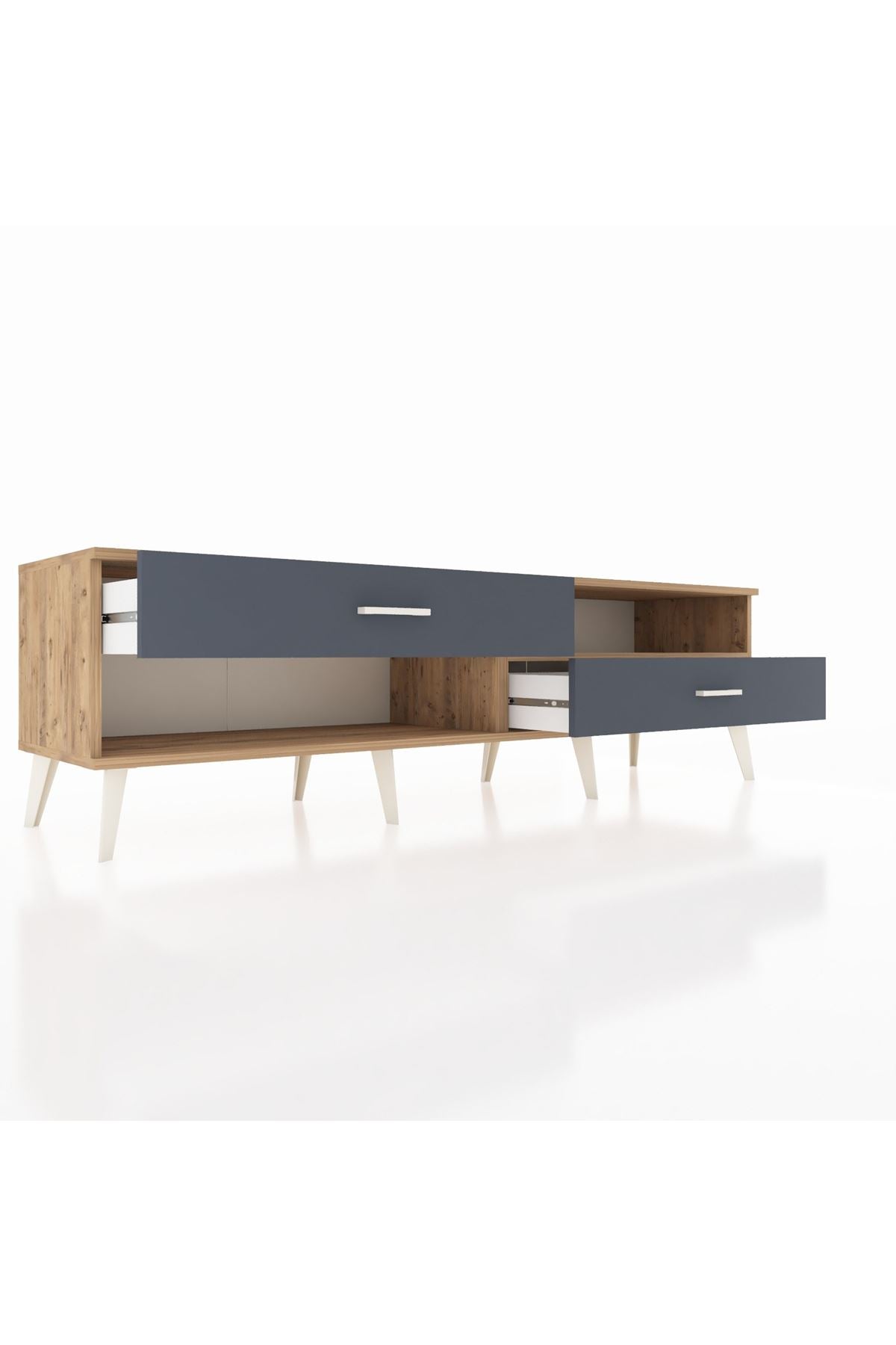 Hyperion TV Ünitesi Tek Raflı 2 Çekmeceli 176x44x51 Çam-Çam/Antrasit