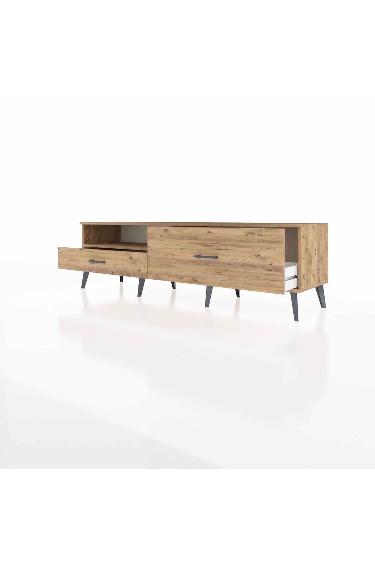 Hyperion TV Ünitesi Tek Raflı 2 Çekmeceli 176x44x51 Çam-Çam/Çam