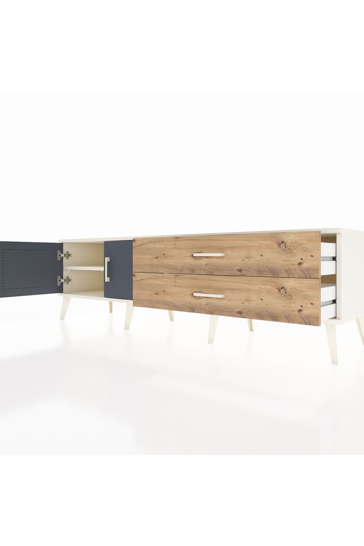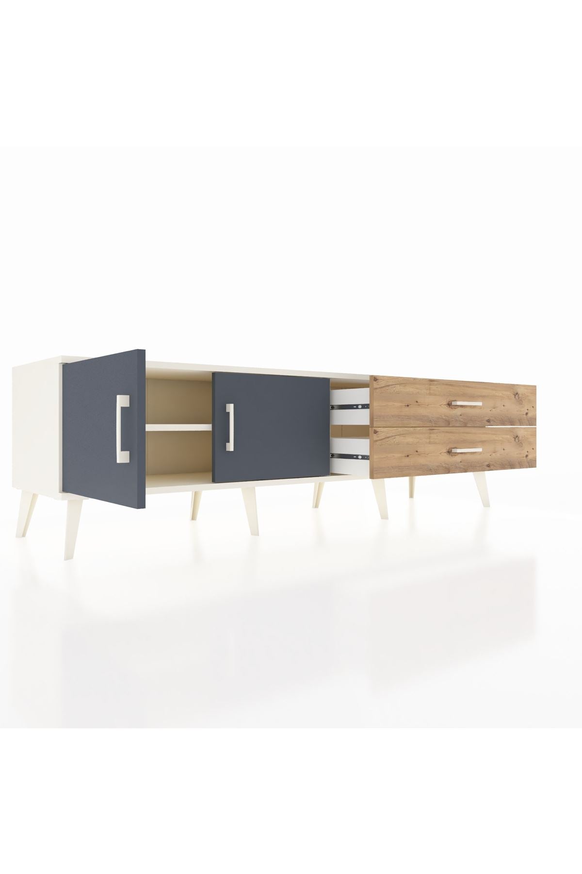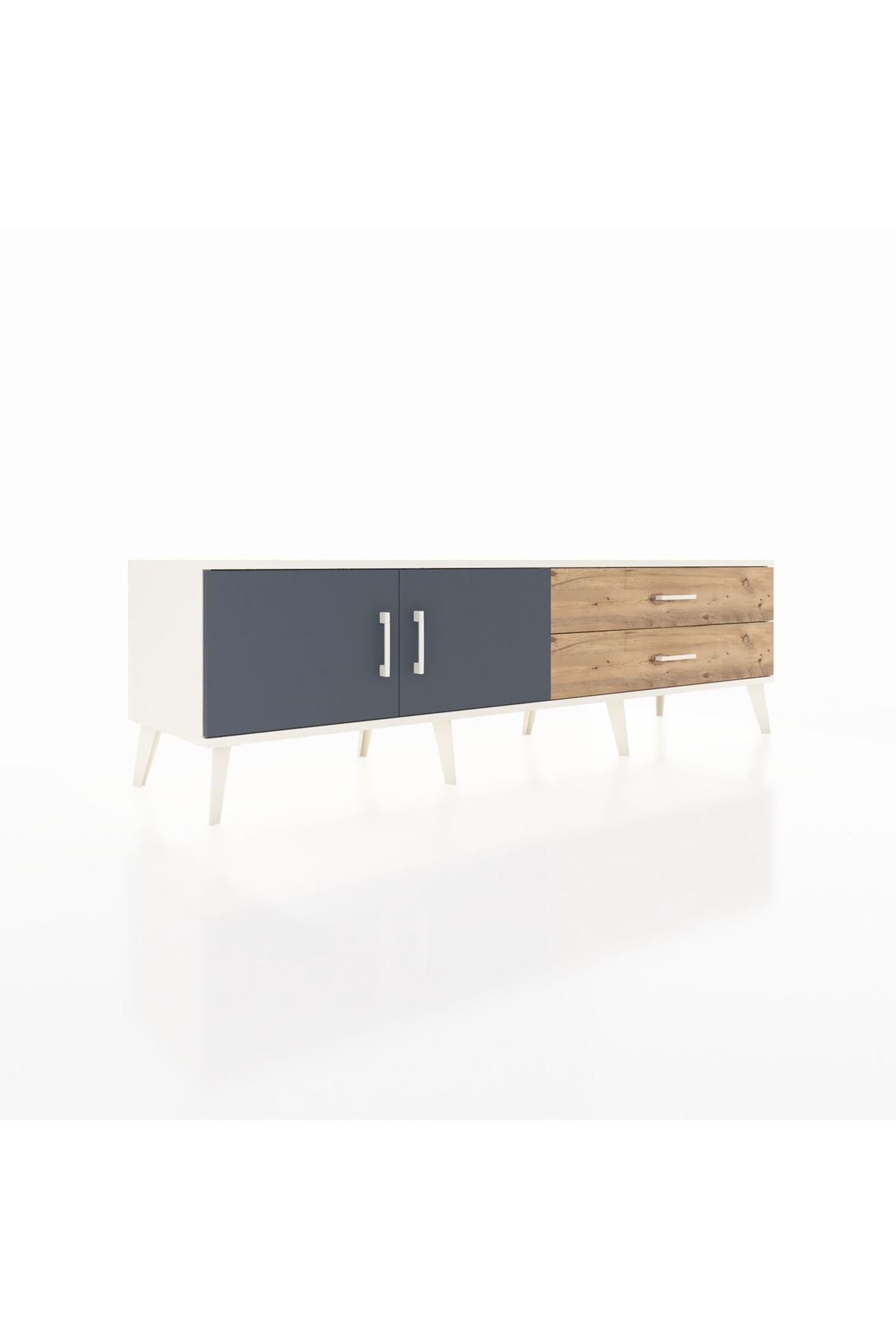 Hyperion TV Ünitesi Tek Raflı 2 Çekmeceli 2 Kapaklı 176x44x51 Aytaşı-Antrasit/Çam