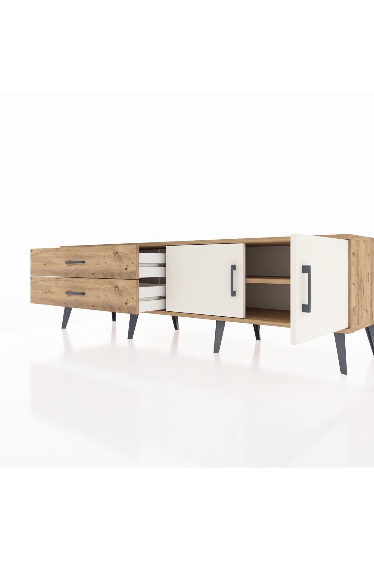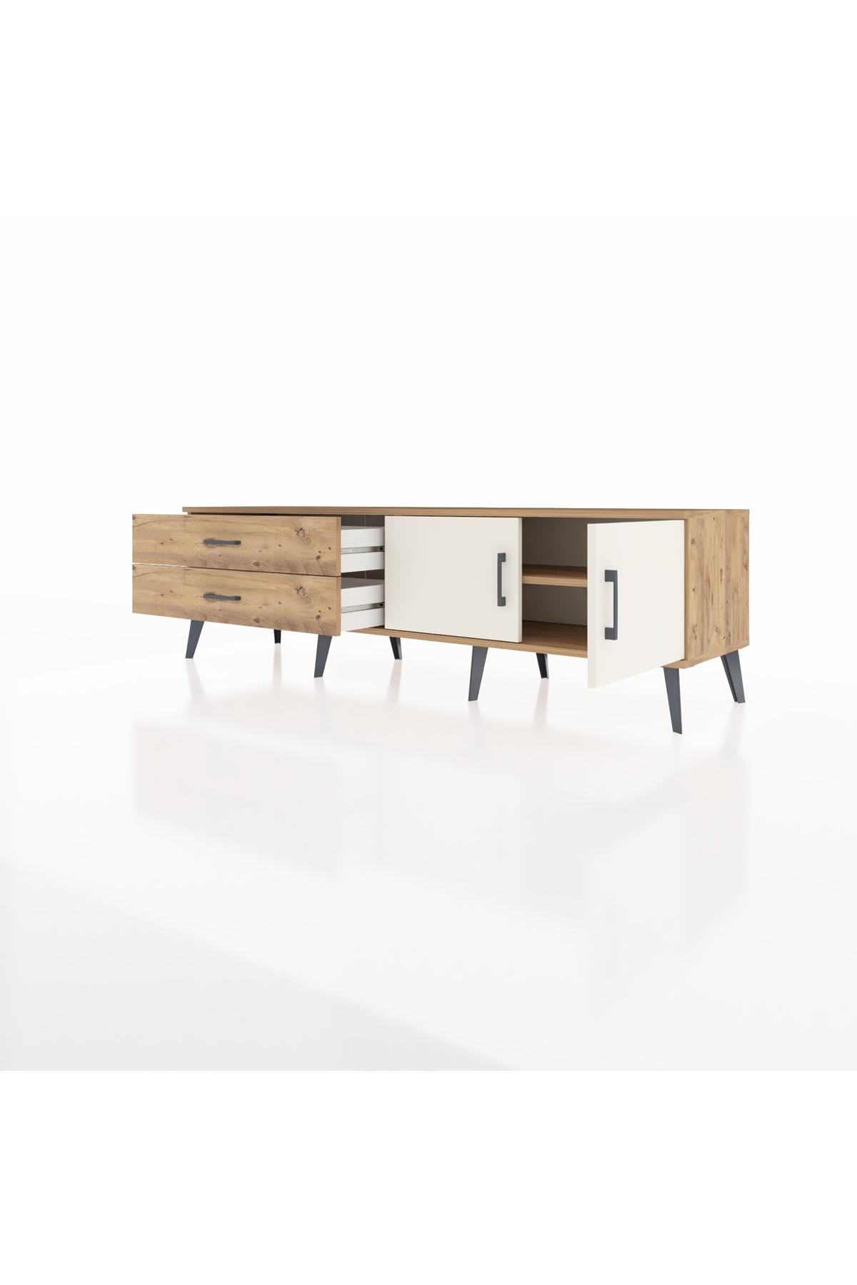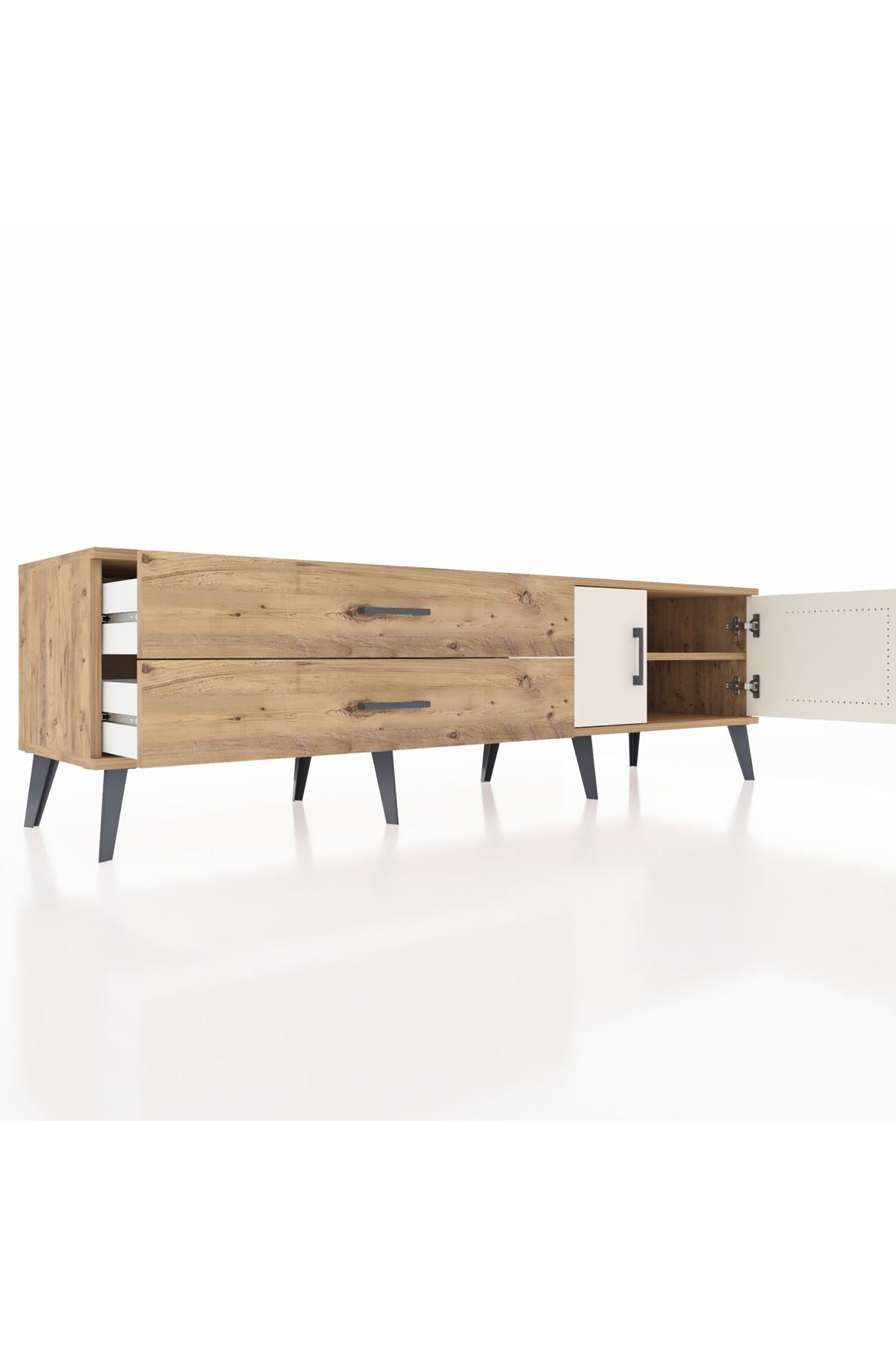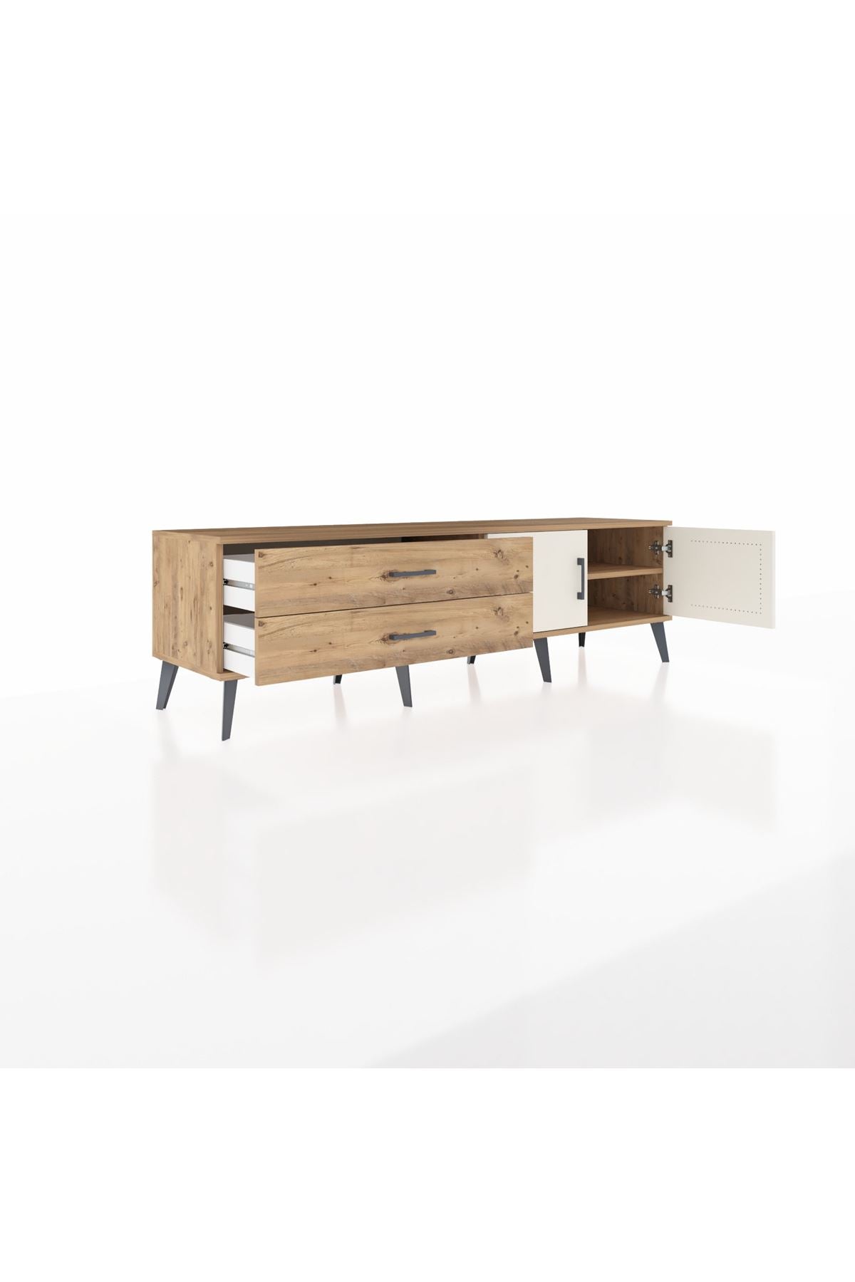Hyperion TV Ünitesi Tek Raflı 2 Çekmeceli 2 Kapaklı 176x44x51 Çam-Aytaşı/Çam